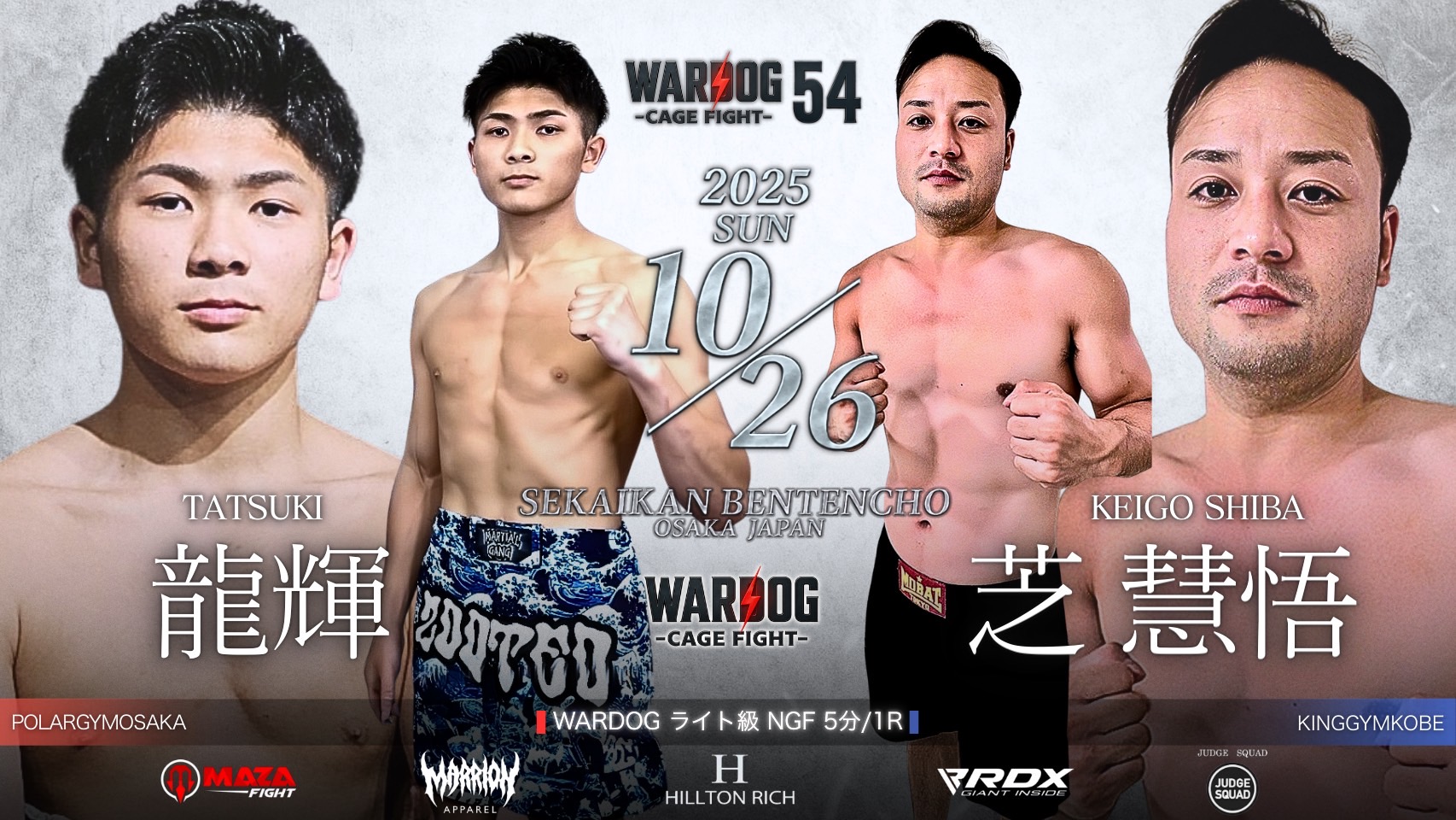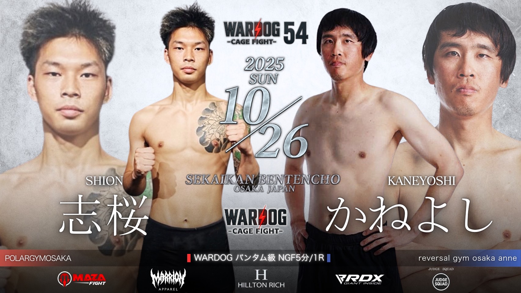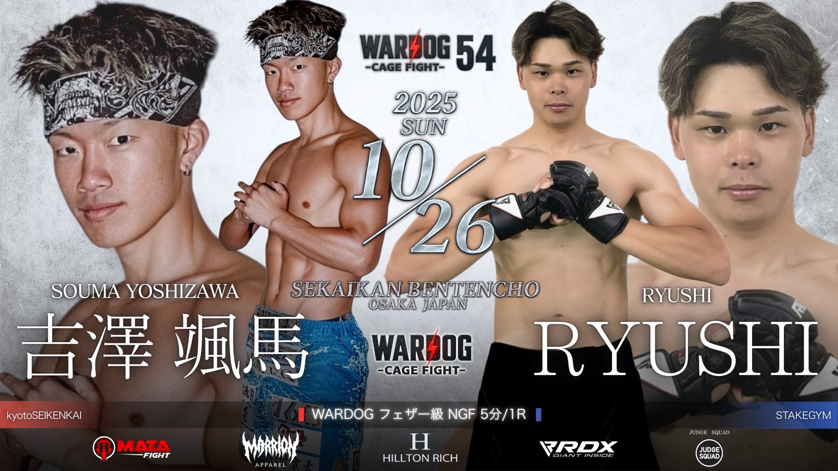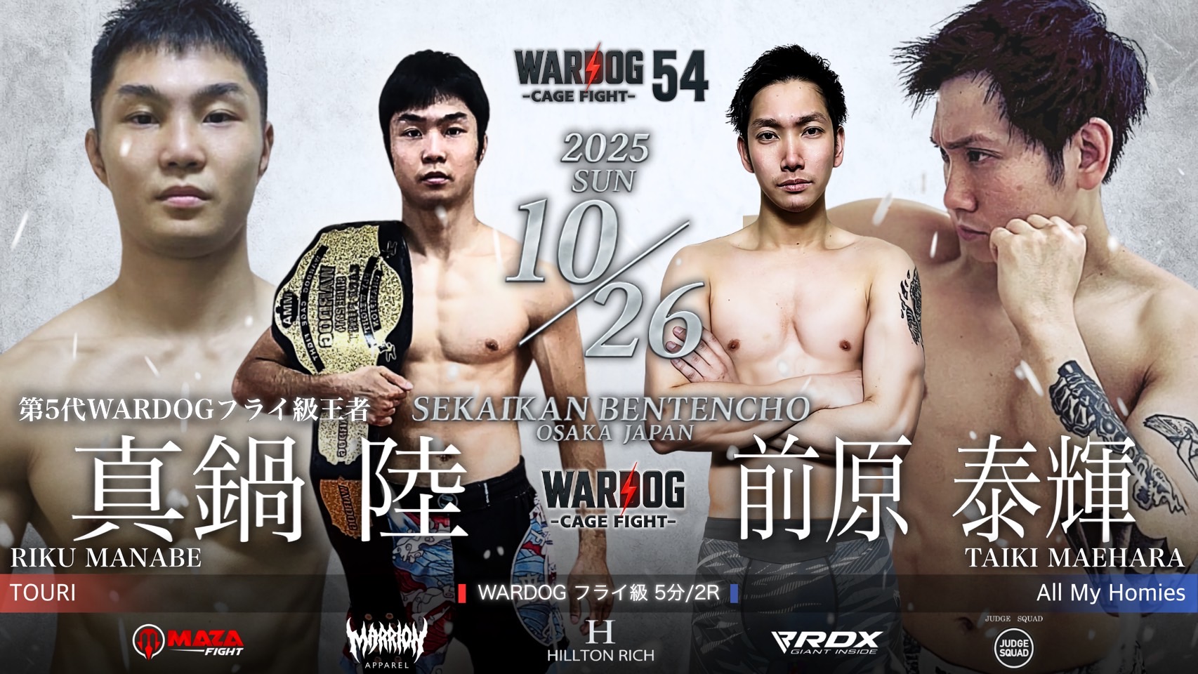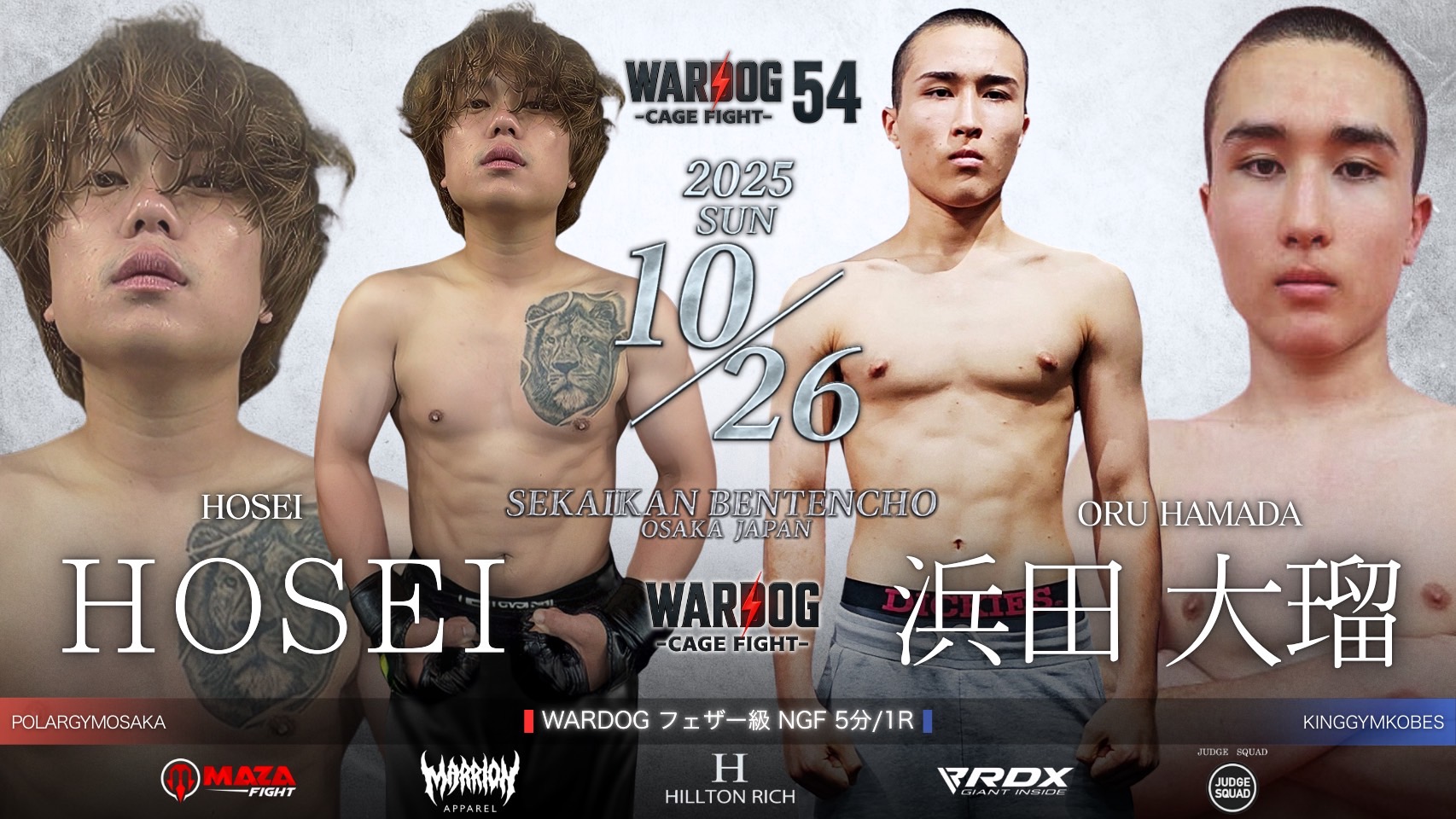 2025年10月26日MARRLIONAPPARELpresents WARDOG CAGE FIGHT 54 1stRound・2ndRoundスケジュールをご覧ください。