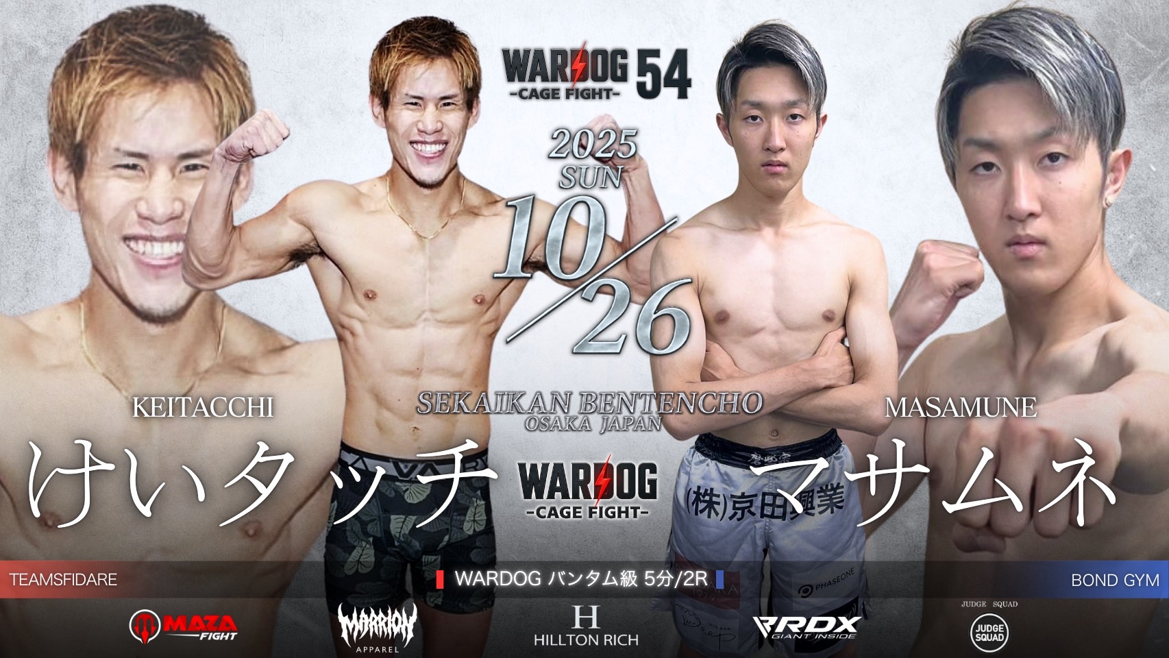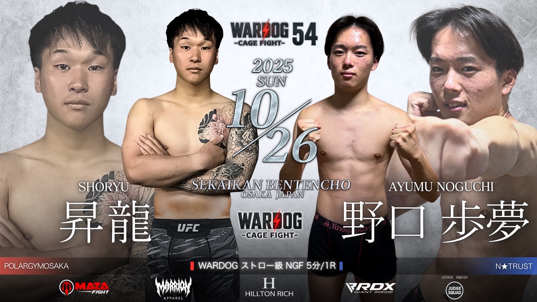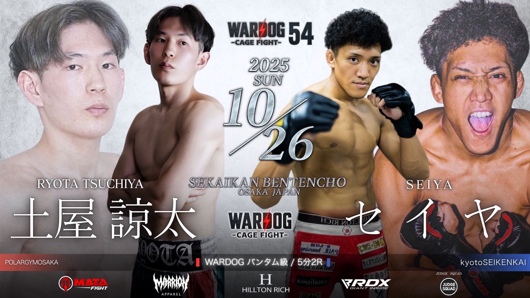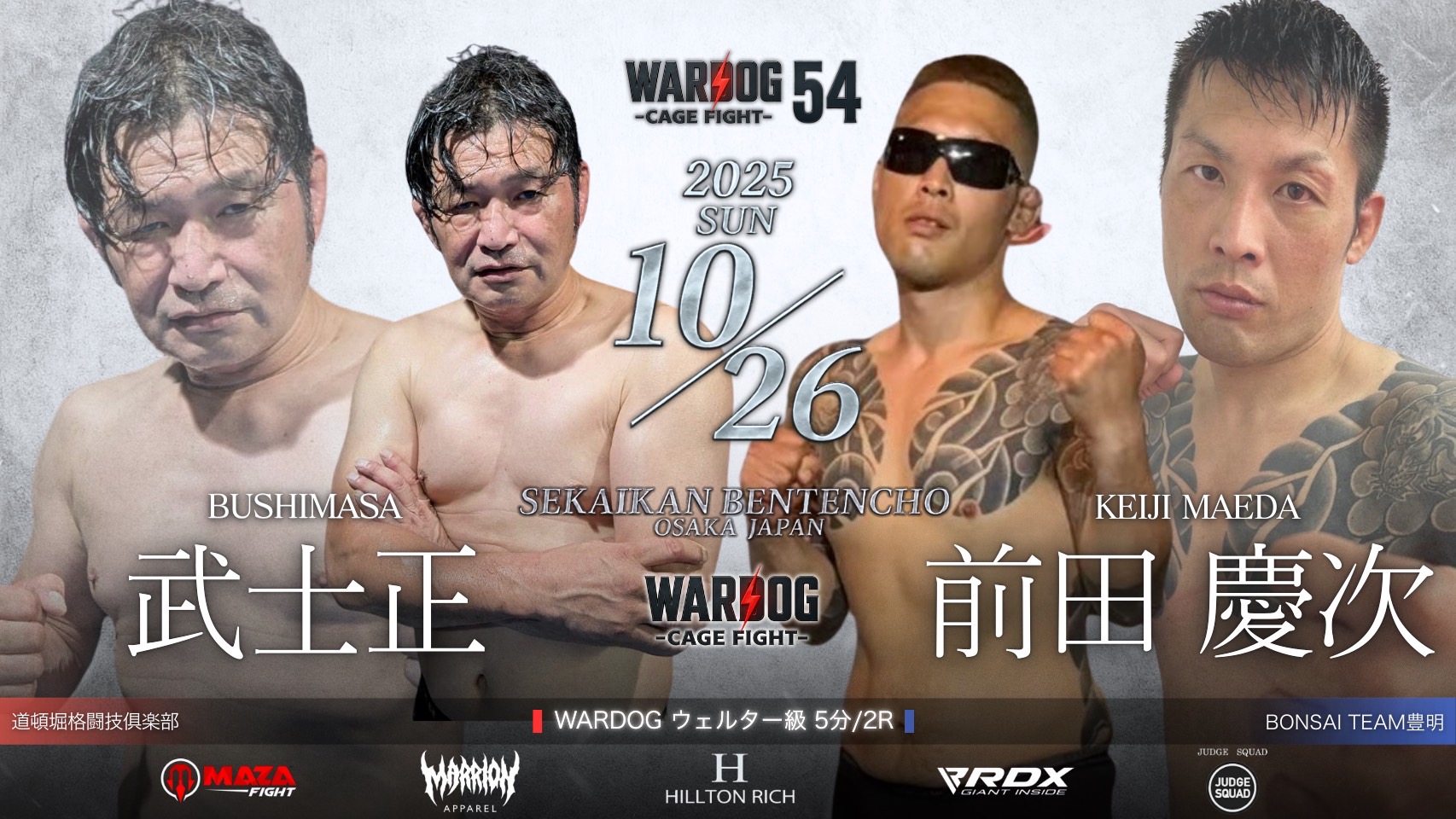 2025年10月26日MARRLIONAPPARELpresents WARDOG CAGE FIGHT 54 1stRound・2ndRoundスケジュールをご覧ください。
