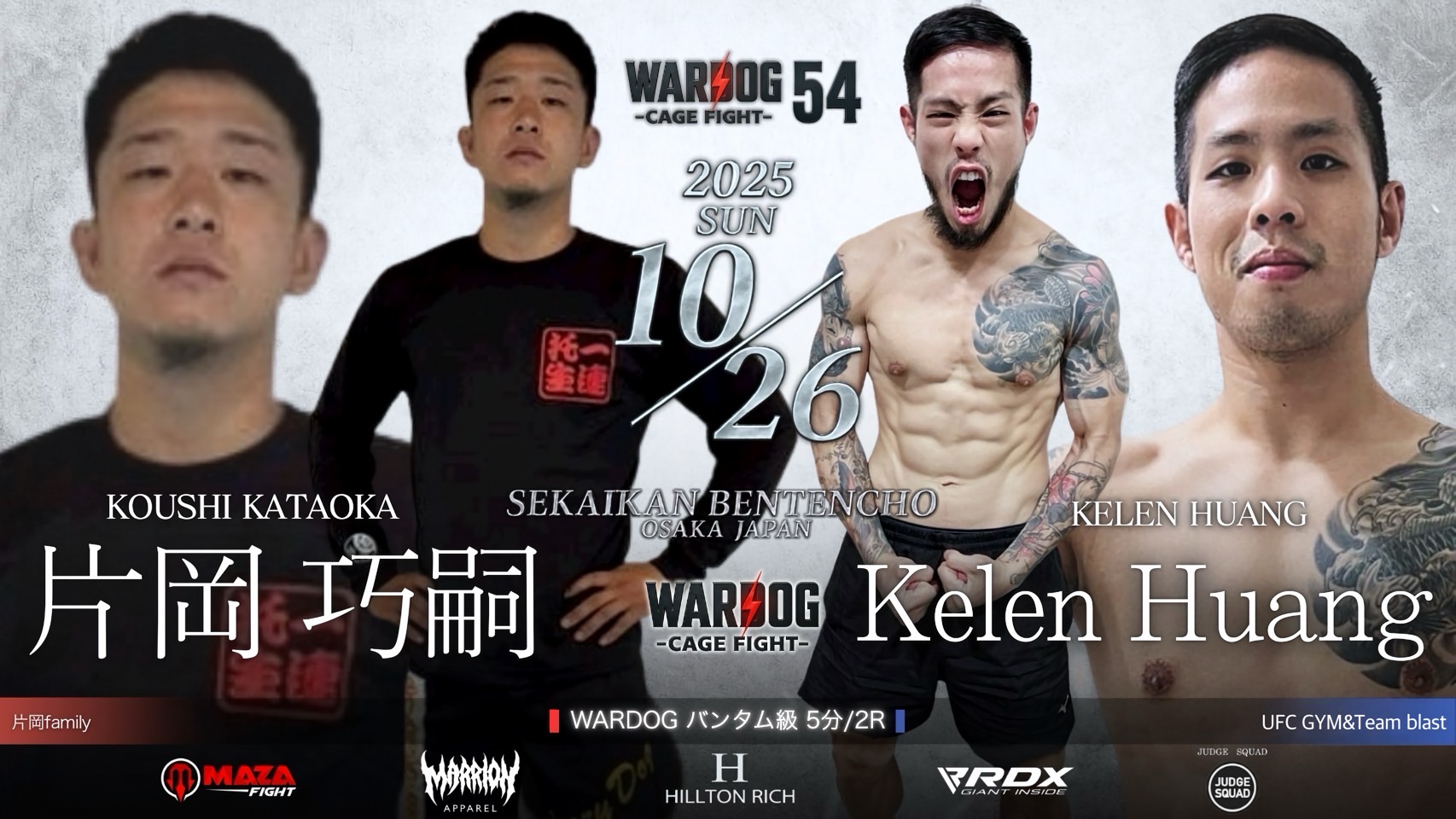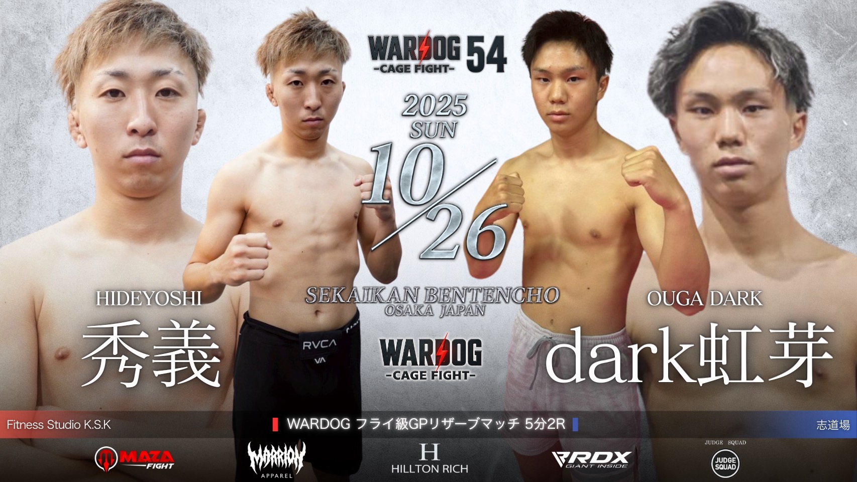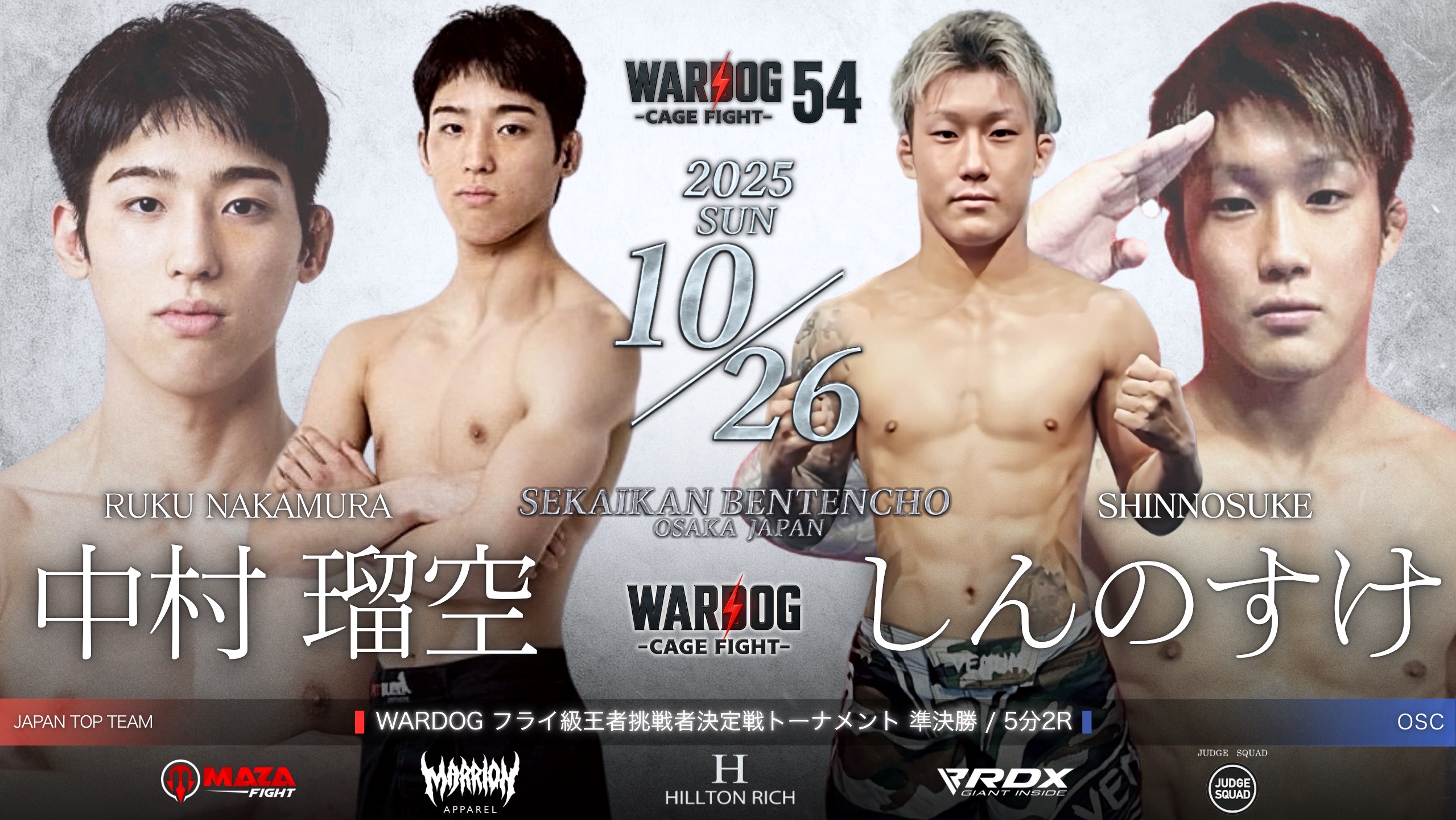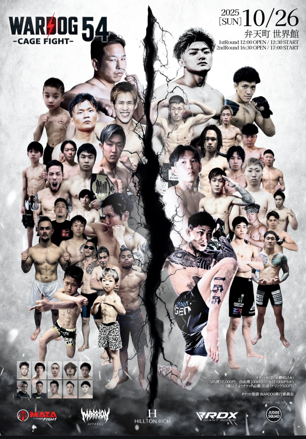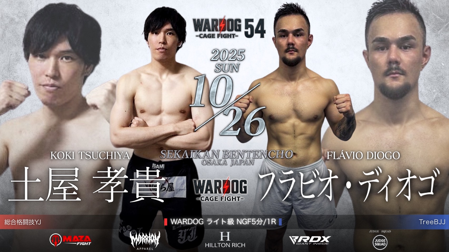 2025年10月26日MARRLIONAPPARELpresents WARDOG CAGE FIGHT 54 1stRound・2ndRoundスケジュールをご覧ください。