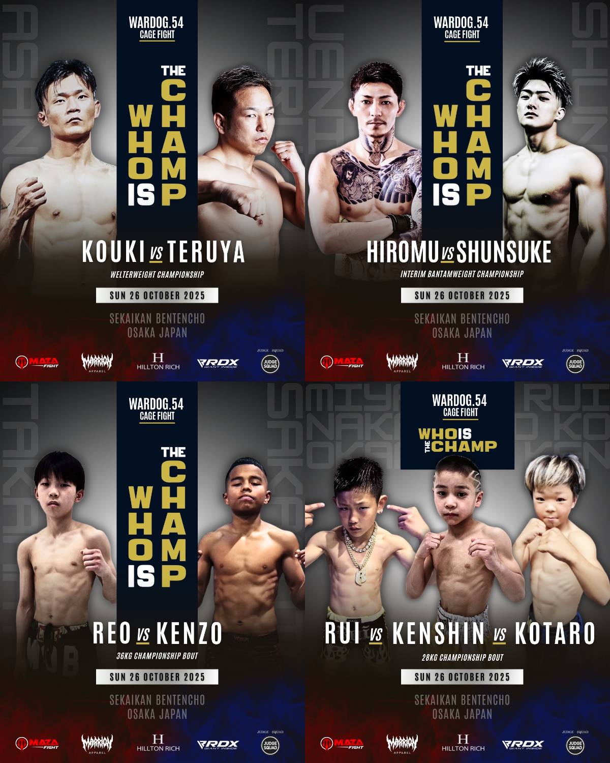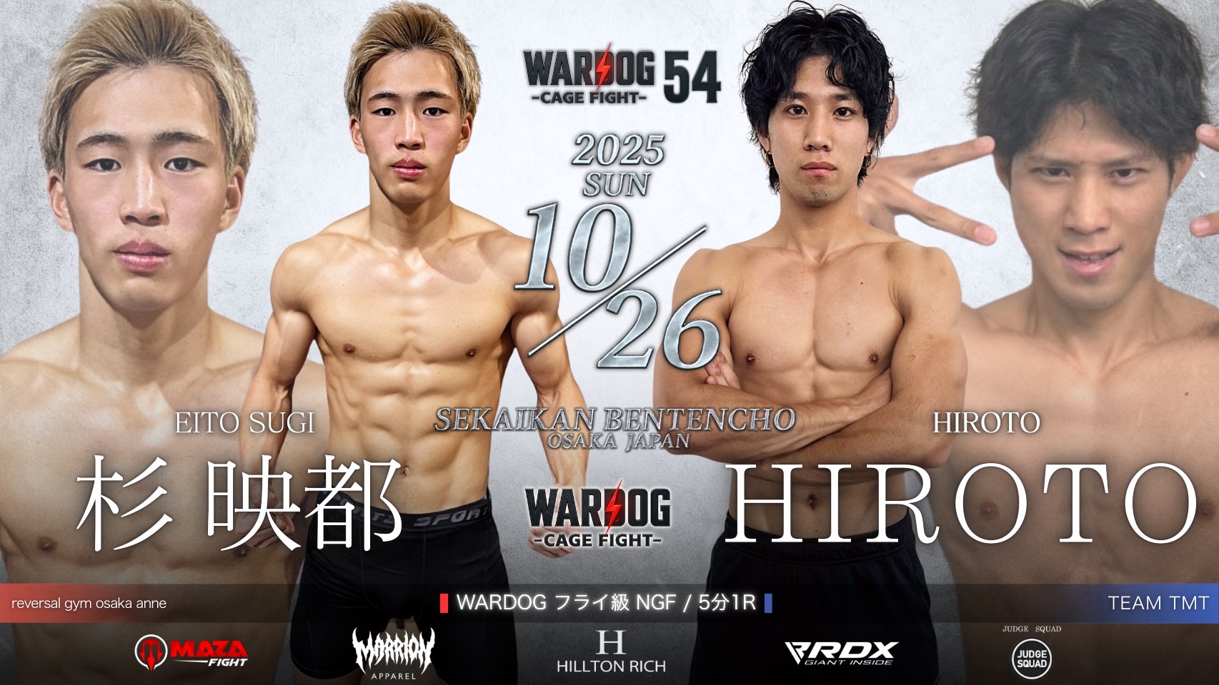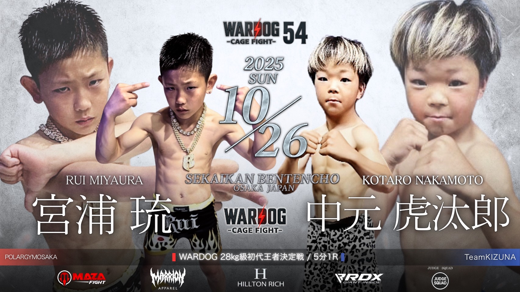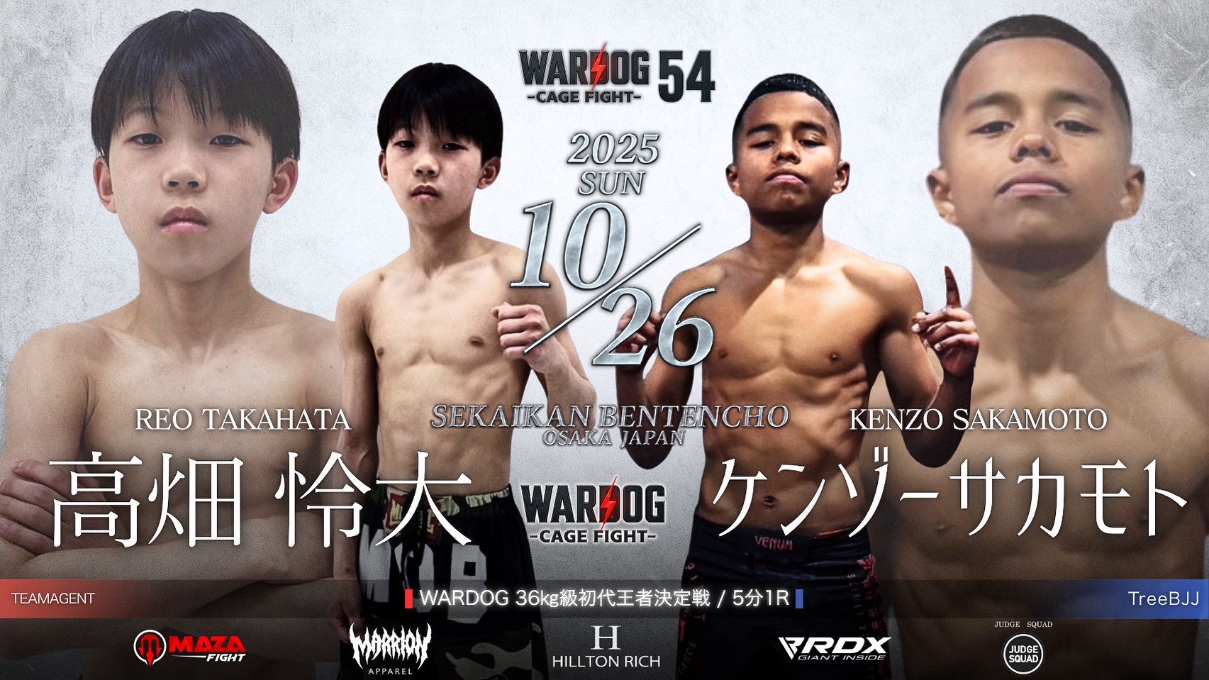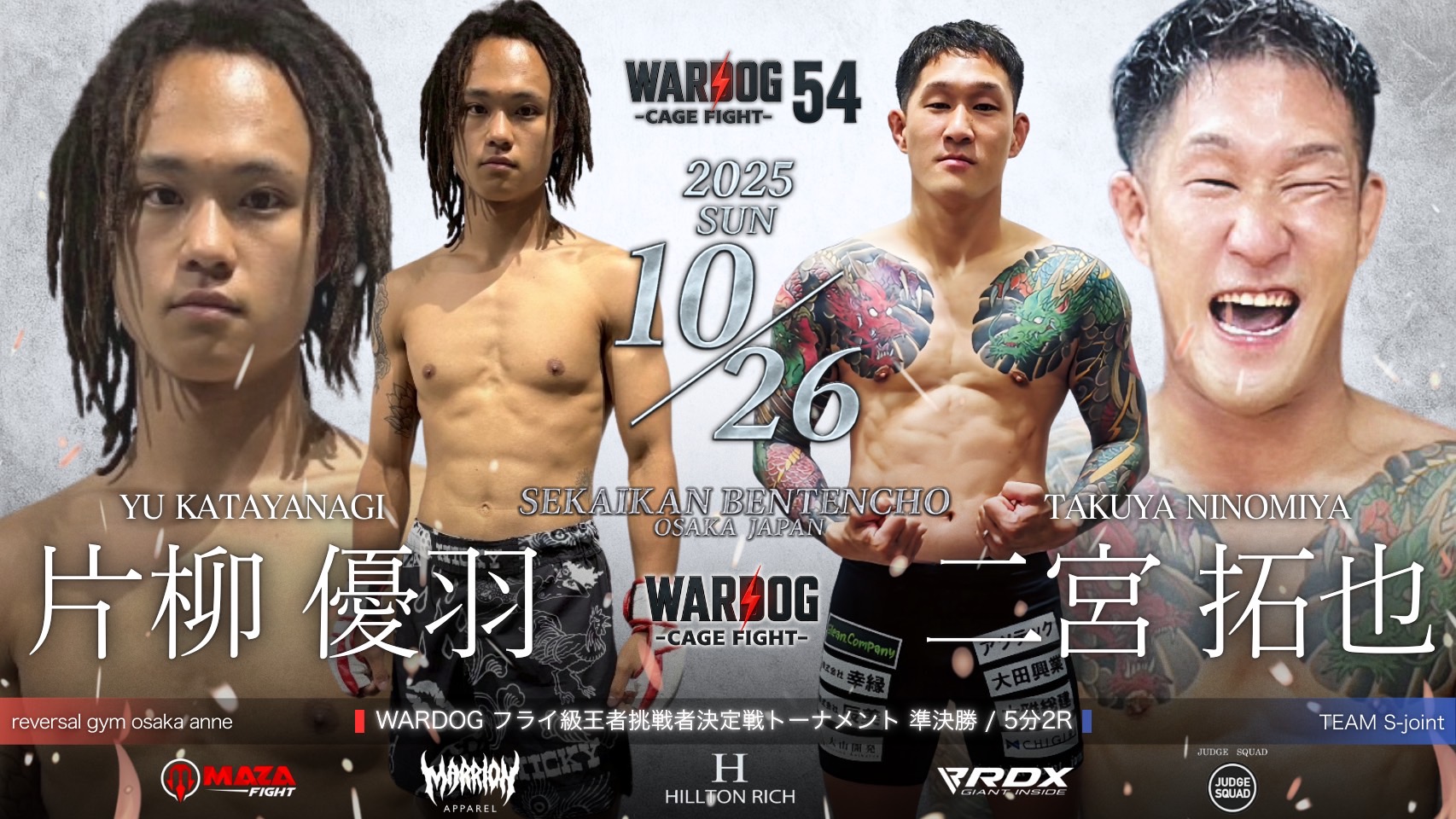 2025年10月26日MARRLIONAPPARELpresents WARDOG CAGE FIGHT 54 1stRound・2ndRoundスケジュールをご覧ください。