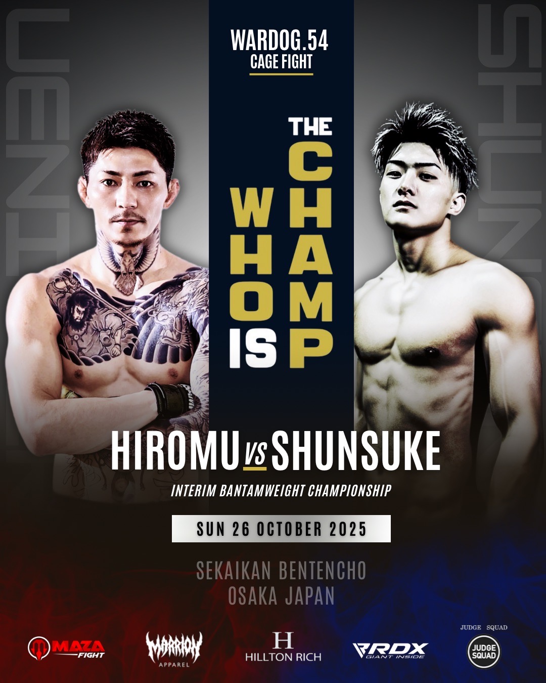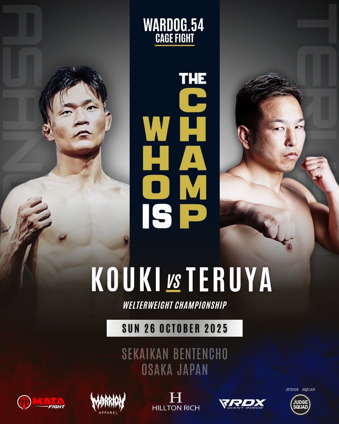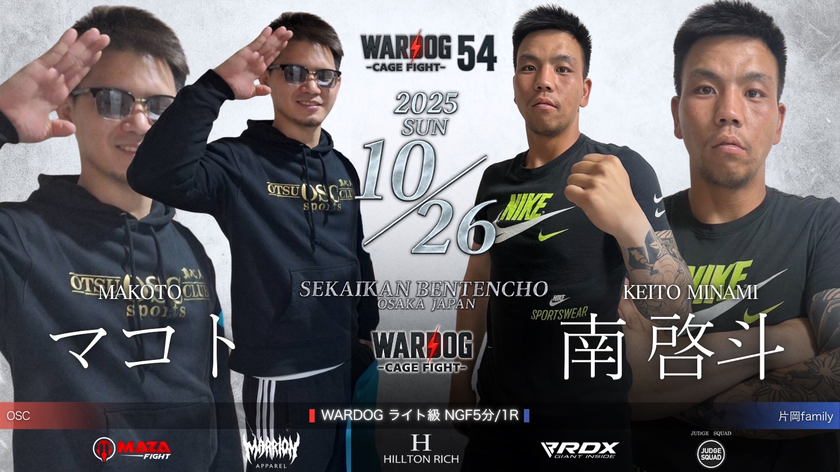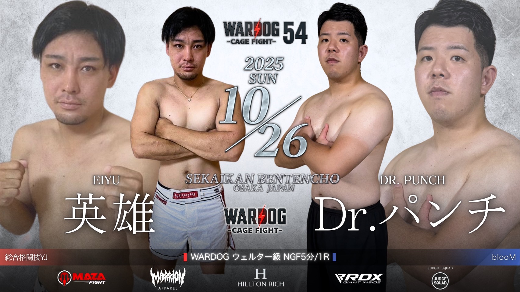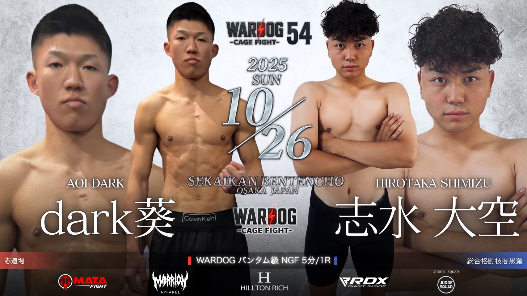 2025年10月26日MARRLIONAPPARELpresents WARDOG CAGE FIGHT 54 1stRound・2ndRound メインイベントにて第4代WARDOGウェルター級、バンタム級暫定王者決定戦を開催!!
