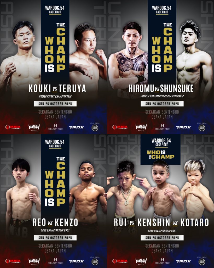 2025年10月26日に世界館にて開催されるWARDOG CAGE FIGHT 54 1stRoundにて第4代WARDOGウェルター級タイトルマッチにて、浅野vs輝也が争い、2ndRoundでは、バンタム級暫定王者決定戦が行われ上荷vsしゅんすけが激突する。そしてフライ級王者挑戦者決定戦トーナメント準決勝が2試合組まれ中村vsしんのすけ、片柳vs二宮。リザーブマッチで秀義vs dark虹芽とカードが揃うなど、タイトルに関わる試合が複数組まれており、WARDOG王者に相応しい戦いが行われるだろう、WARDOG王者はGLADIATORでは2階級制覇王者である八木、フェザー級王者経験がある徳野が活躍しており、他団体で実績を残している。