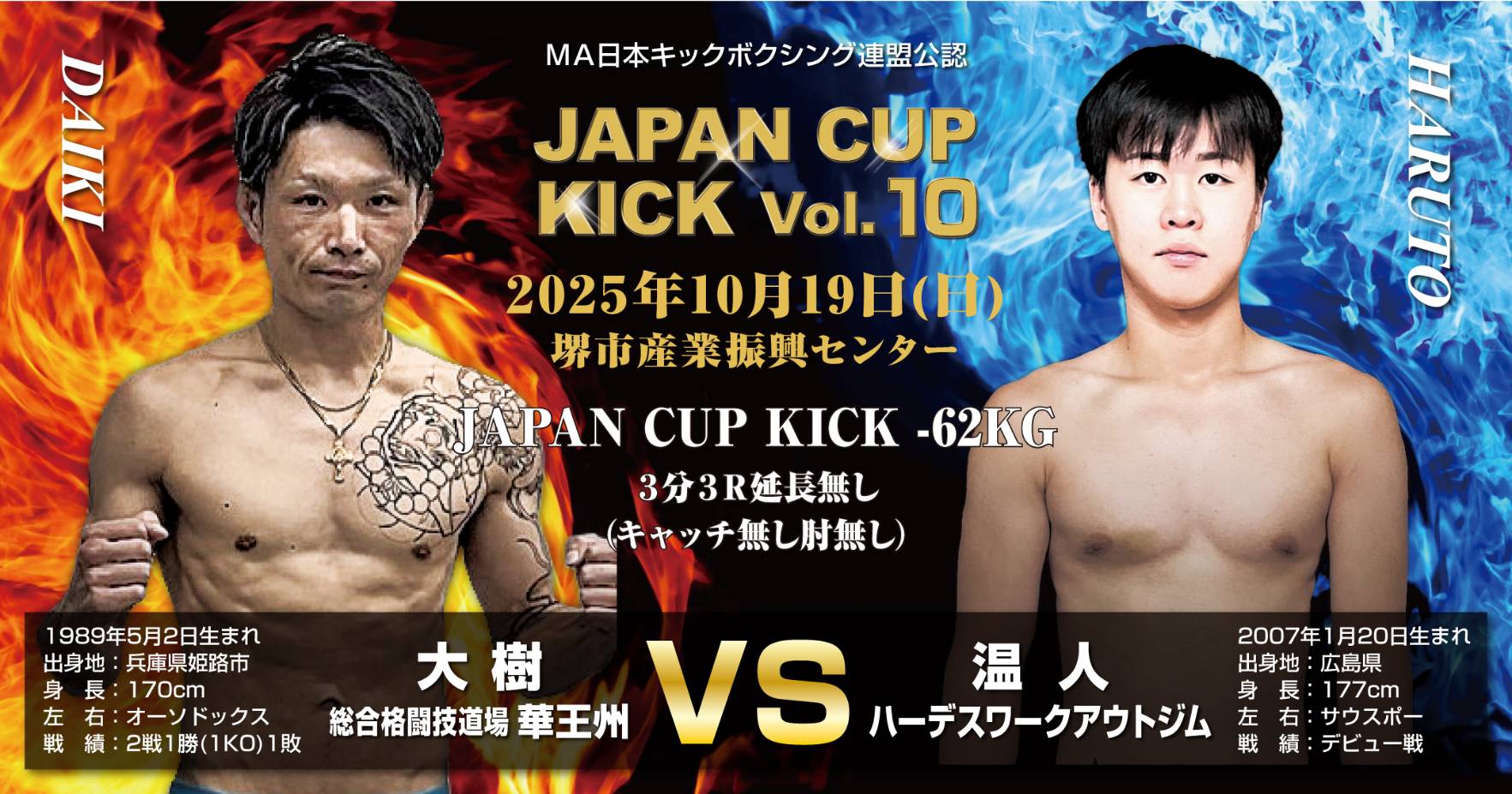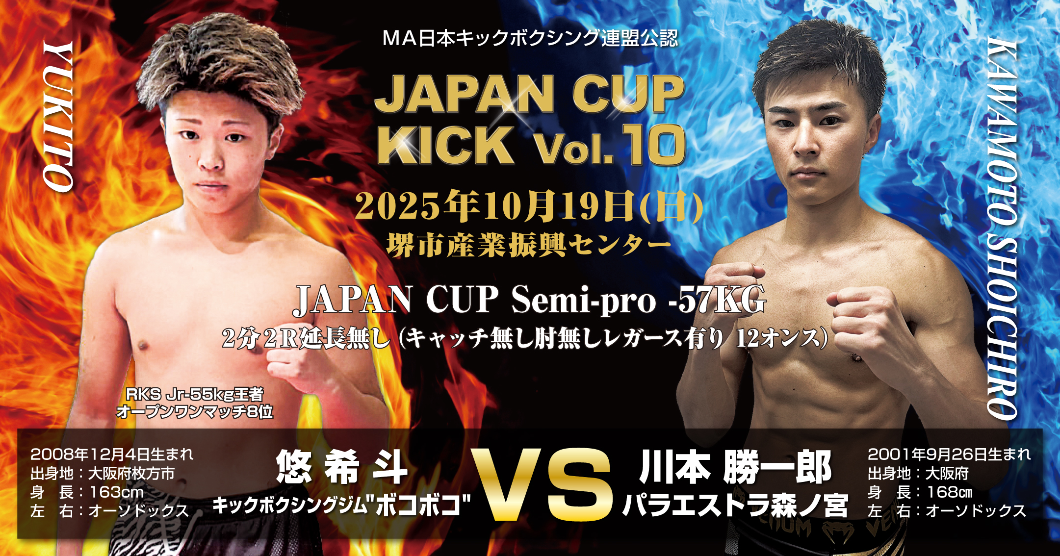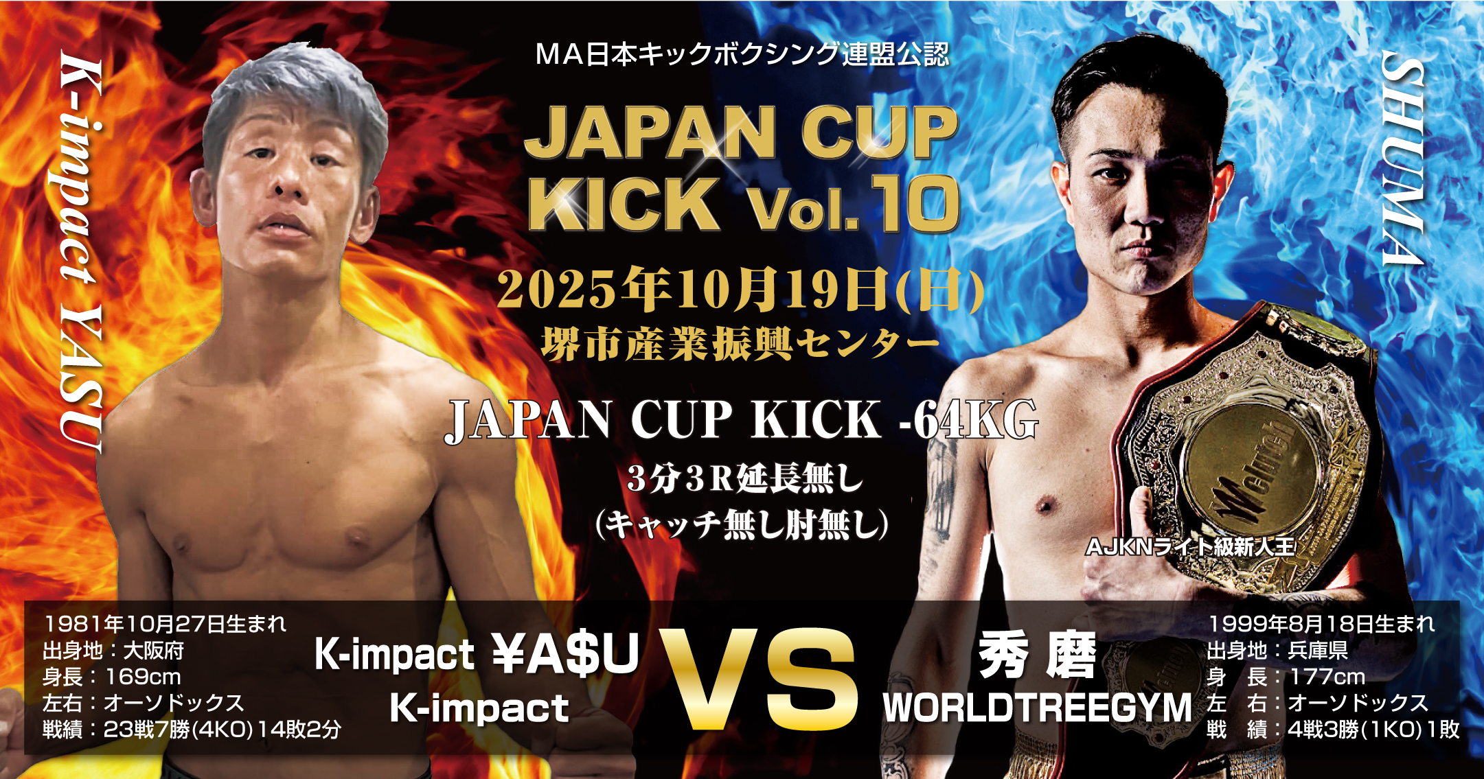 2025年10月19日JAPAN CUP KICK 10 メインイベントスーパーバンタム級王座決定戦で濱田vs唯斗が決定。他全カード決定する!!