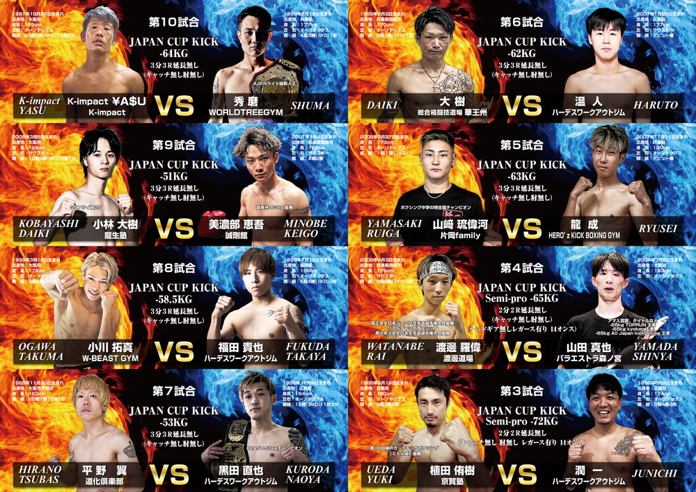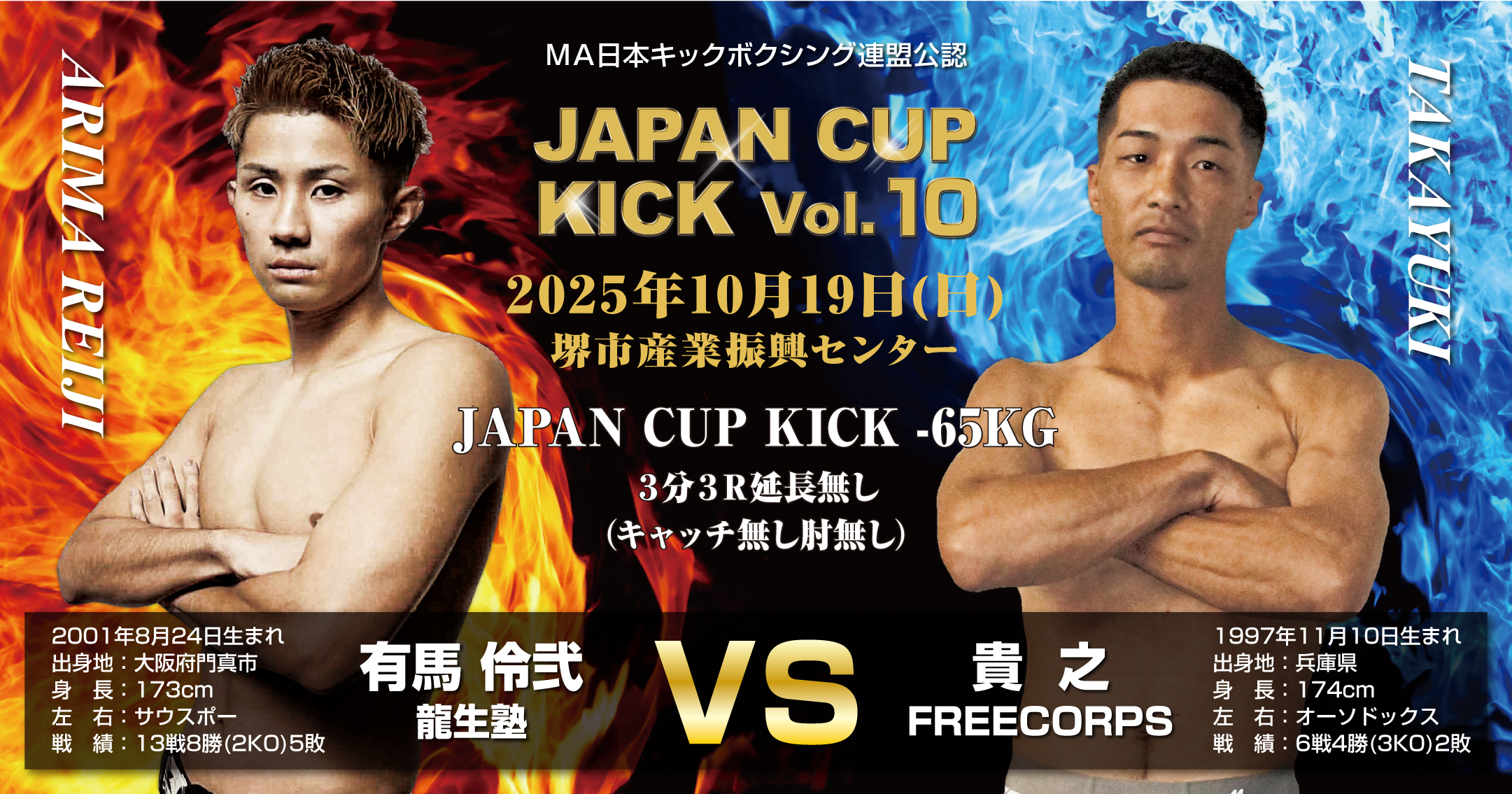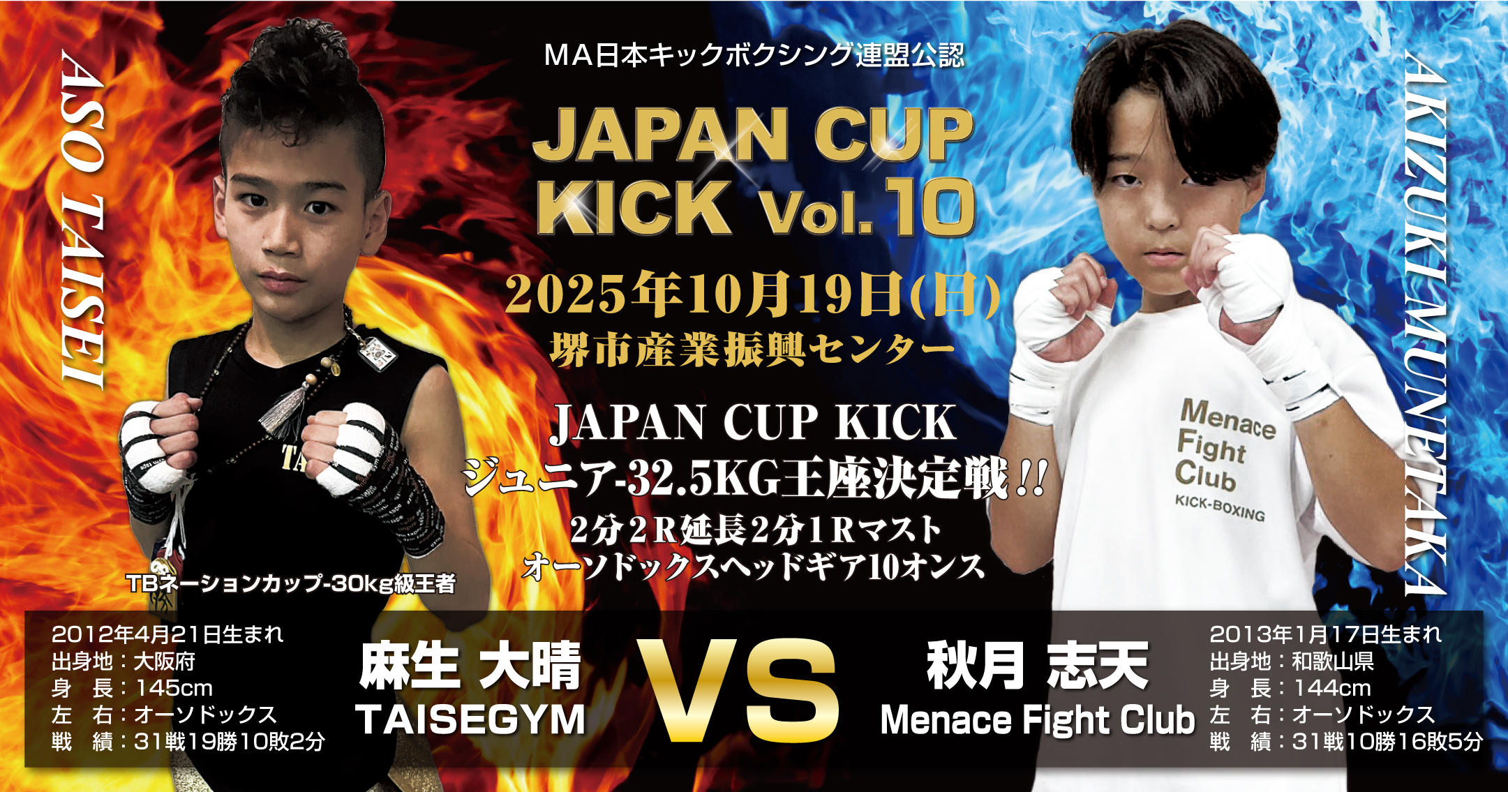 2025年10月19日JAPAN CUP KICK 10 メインイベントスーパーバンタム級王座決定戦で濱田vs唯斗が決定。他全カード決定する!!