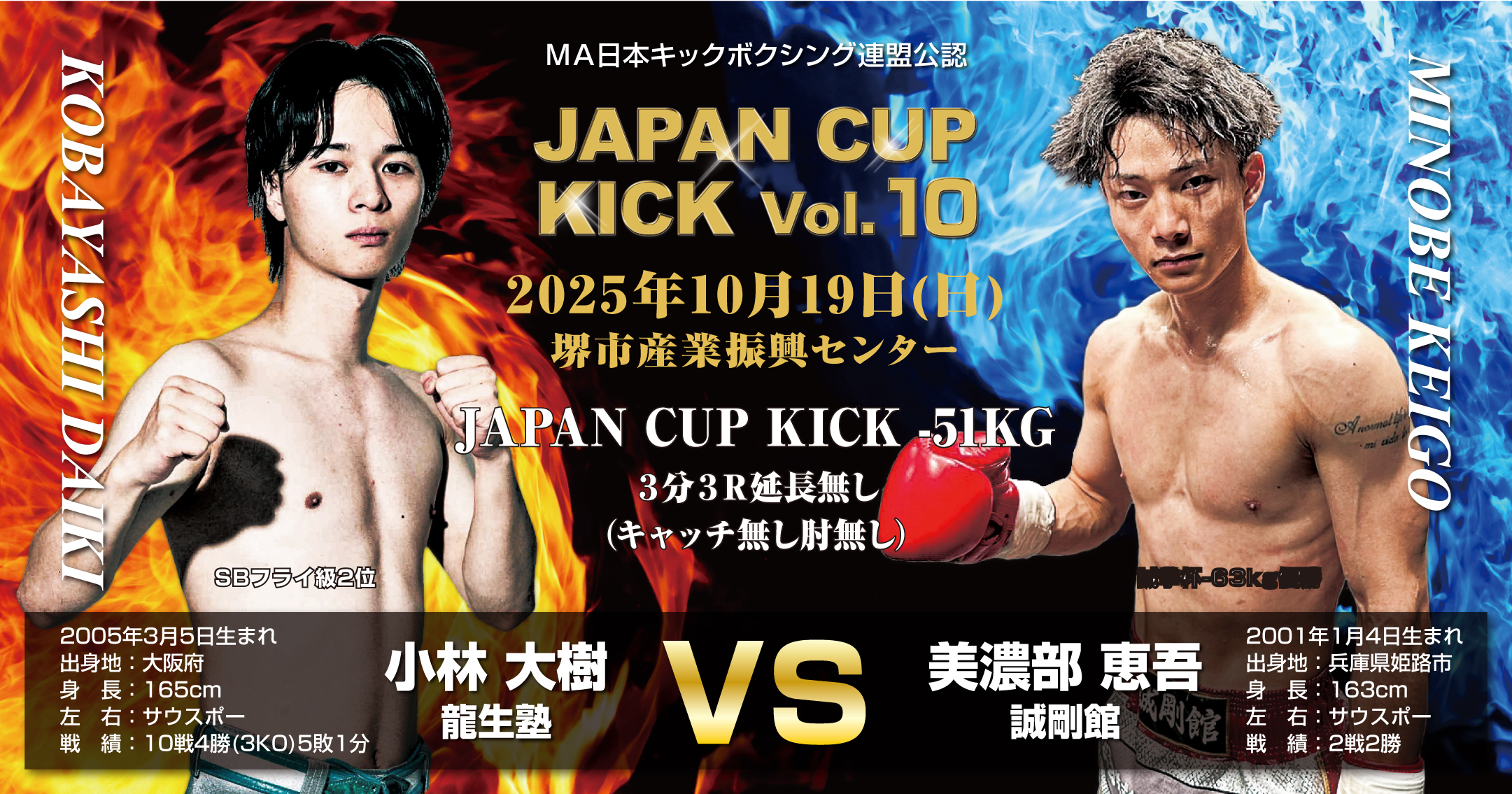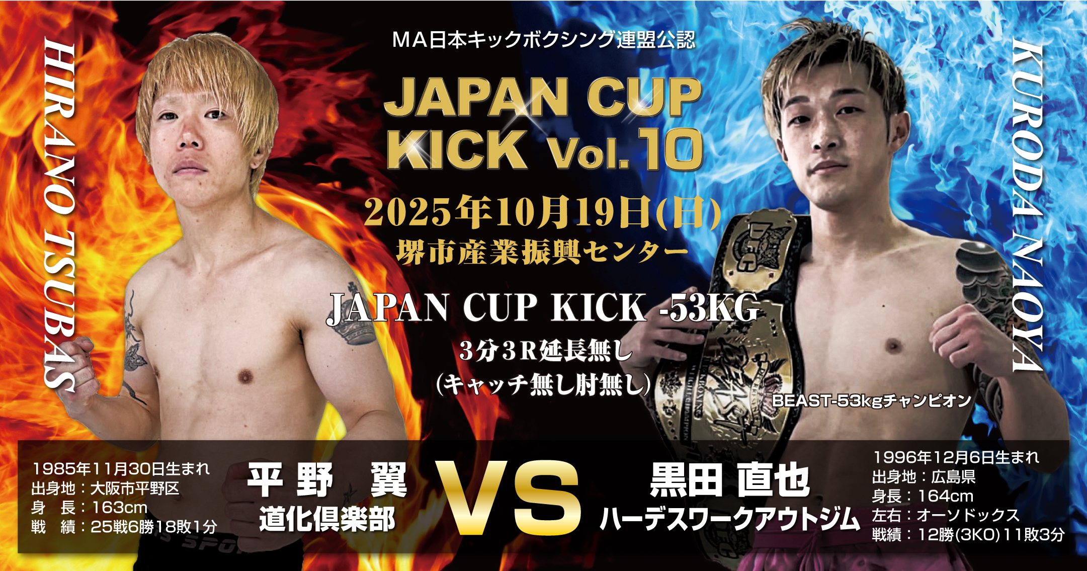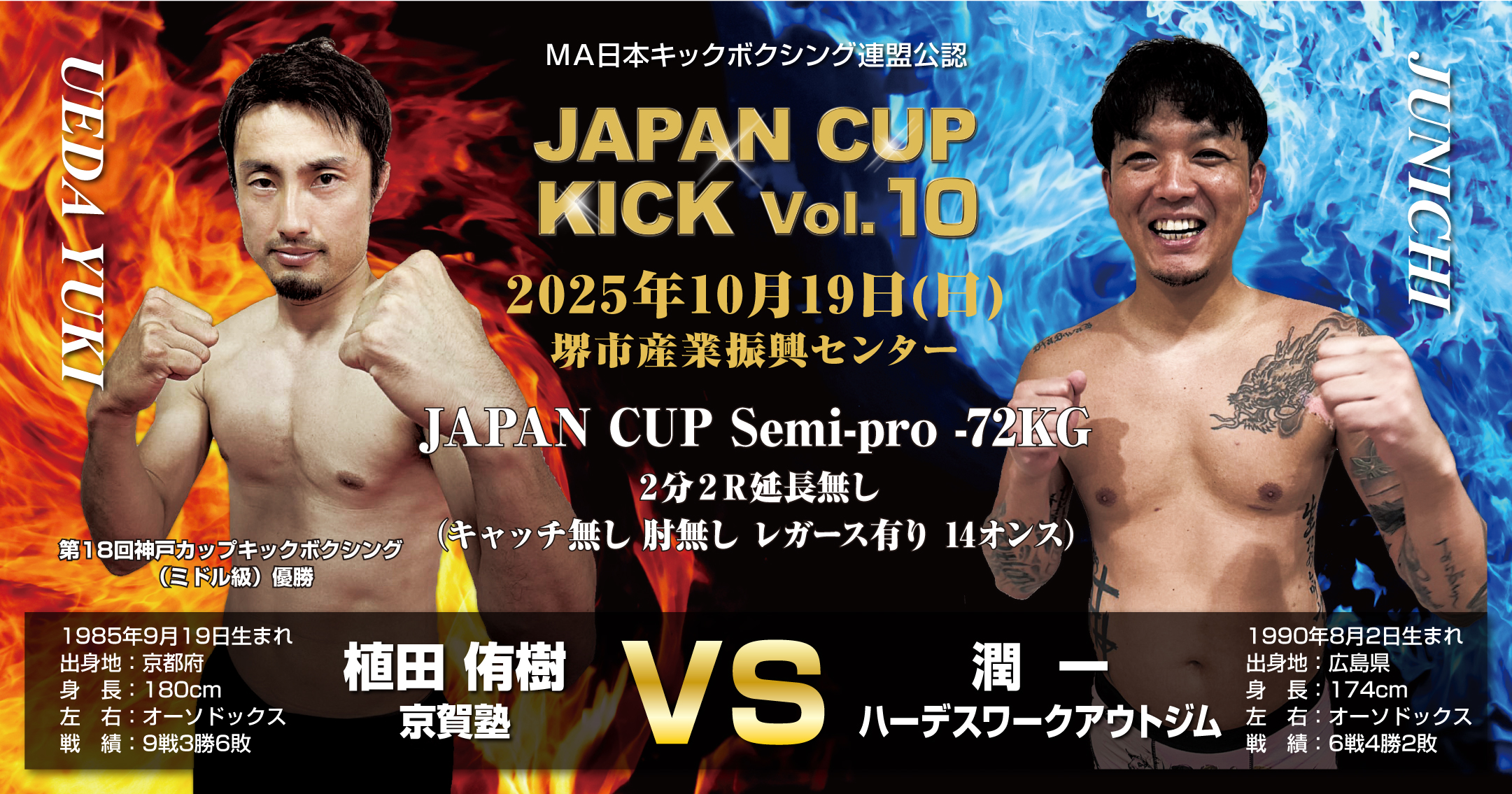 2025年10月19日に堺市産業振興センターで開催されるJAPAN CUP KICK 10にて、メインイベントはジャパンカップスーパーバンタム級王座決定戦が濱田vs唯斗で争う、濱田は高い攻撃を武器に勝利をしており、アマチュアでも多くの実績を残している。対する唯斗も数多くのアマチュアタイトルを獲得し、プロでは無敗で勝ち上がっており、その勢いでJAPAN CUP KICKのベルトを目指す。