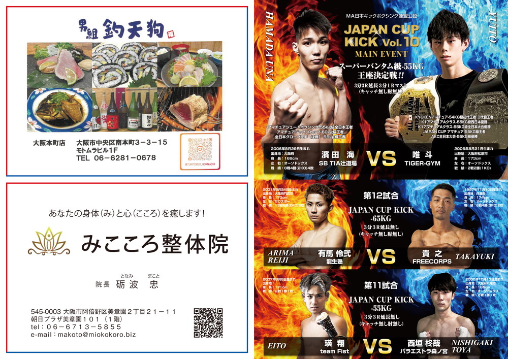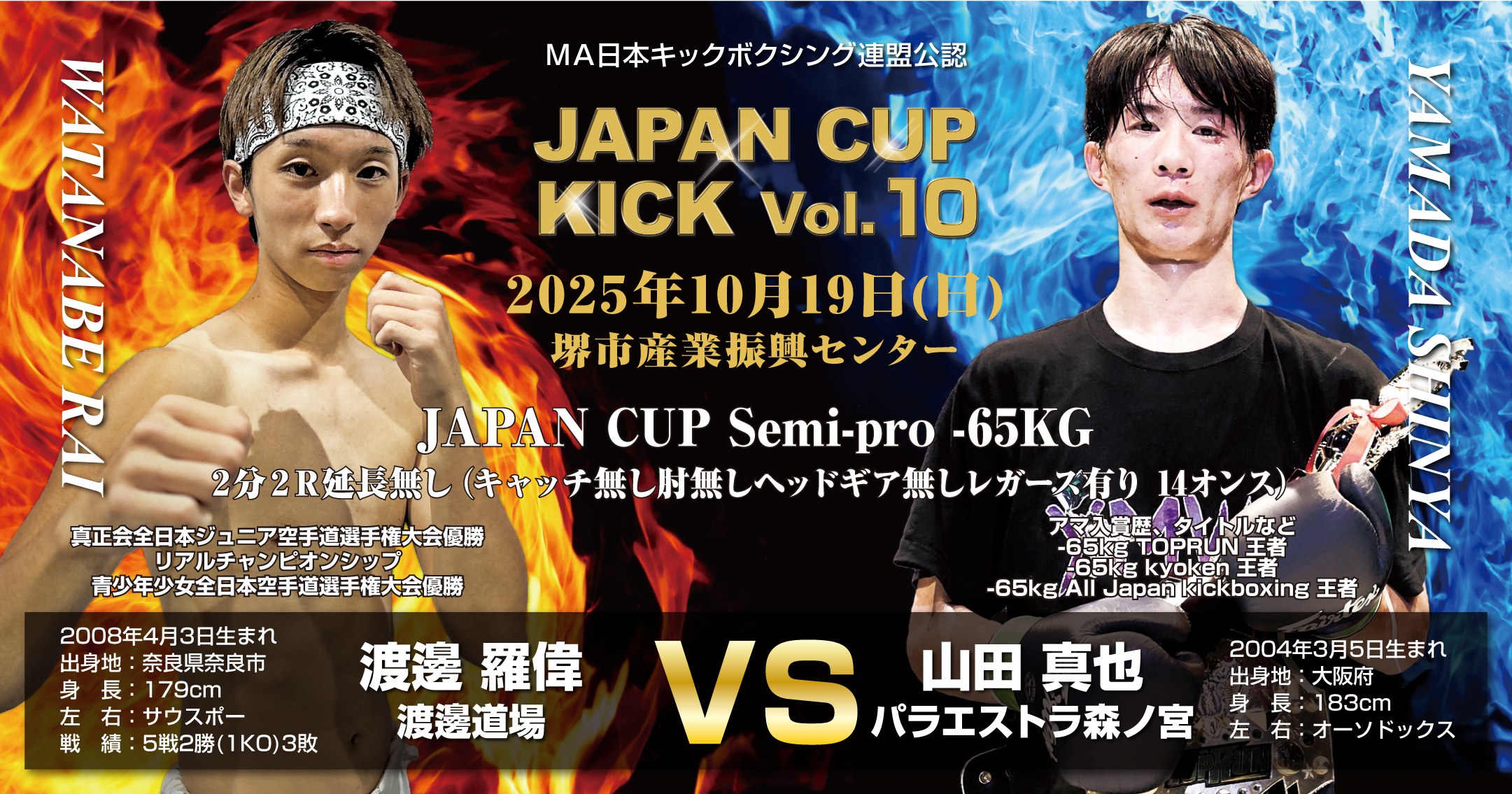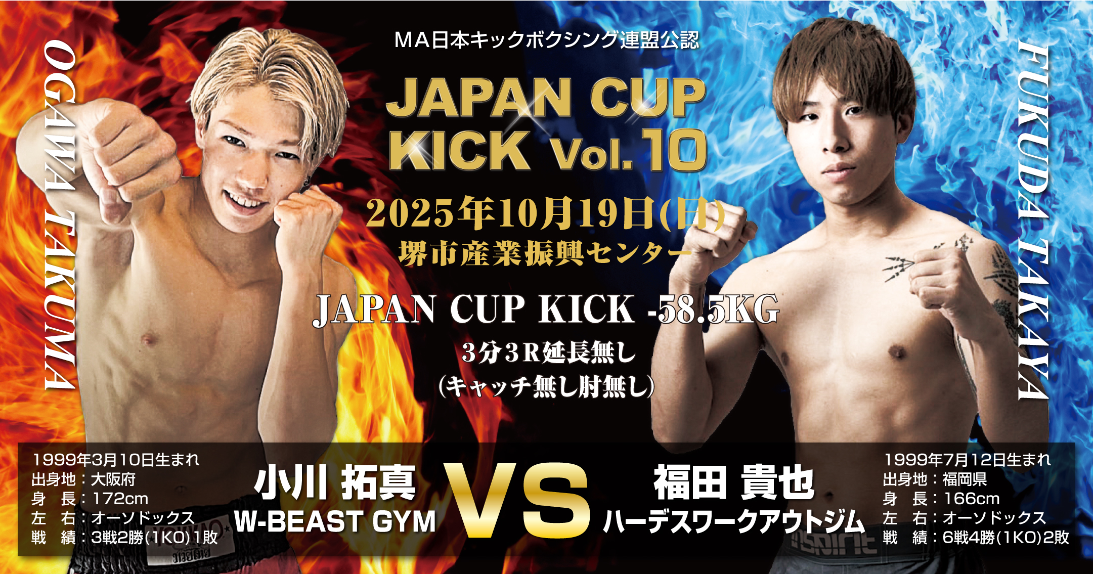2025年10月19日に堺市産業振興センターで開催されるJAPAN CUP KICK 10にて、メインイベントはジャパンカップスーパーバンタム級王座決定戦が濱田vs唯斗で争う、濱田は高い攻撃を武器に勝利をしており、アマチュアでも多くの実績を残している。対する唯斗も数多くのアマチュアタイトルを獲得し、プロでは無敗で勝ち上がっており、その勢いでJAPAN CUP KICKのベルトを目指す。