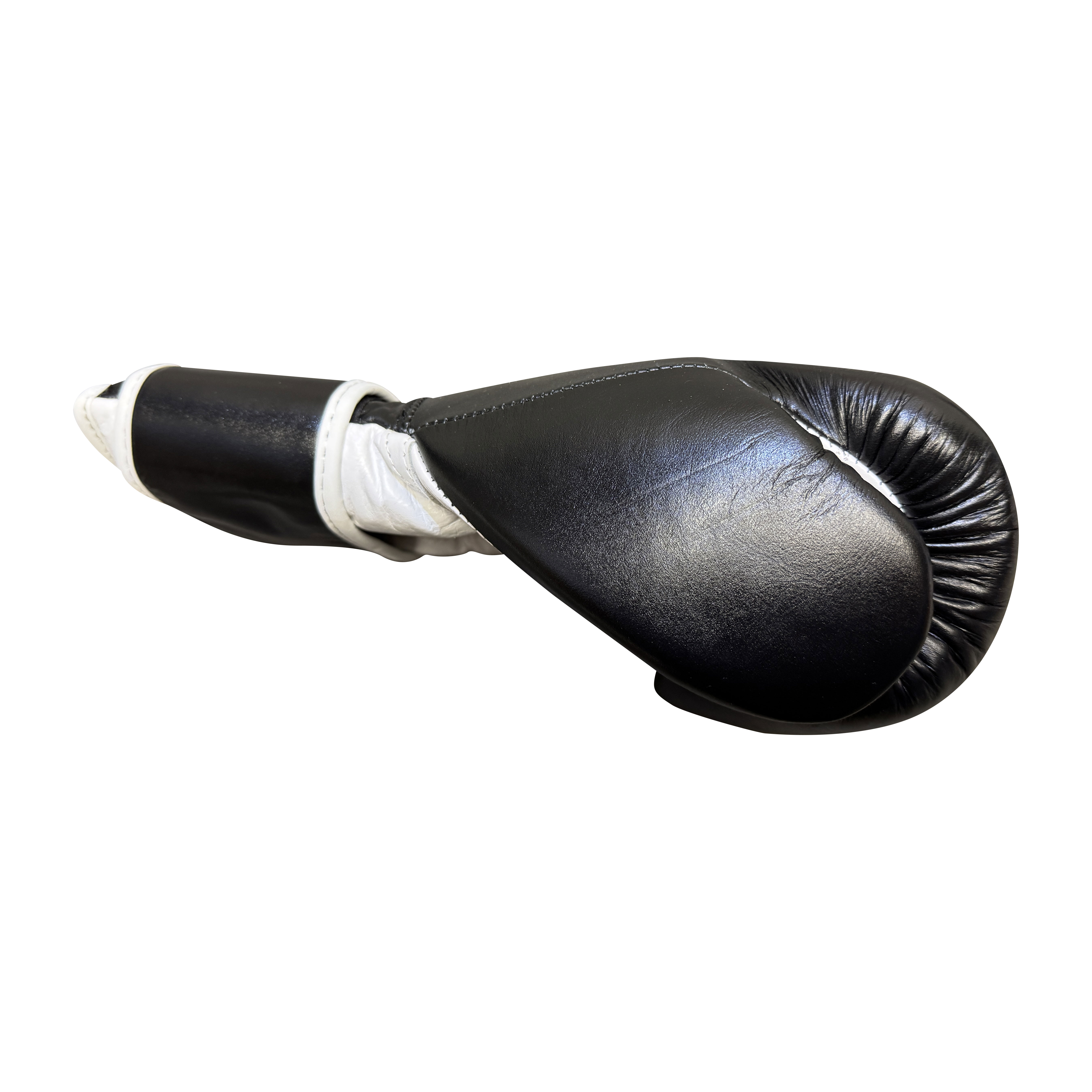 今回のベースとなったのは、FIGHTERS SPIRITSスタンダードボクシンググローブです。スタンダードな仕様で柔らかい牛革とウレタンを使っており、とても使いやすいグローブとなっております。牛革はGenuine quality cowhide leather(ジェニュインクオリティーカウハイドレザー)を使用し、職人の手作業で作っており、orignal genuine latex sheet molding(オリジナルジェニュインレイテクスシートモウルディング)製作です。リスト部分を厚くしており、パンチを打つ際や、スパーリングパートナーからの打撃を手首で受けた際にも守ります。グリップバーは握りやすく手にフィットし、手のひら側に空気穴が設けられており、内側のナイロン素材を使っているので通気性を重視しております。ボクシング、ムエタイなどあらゆる打撃格闘技に使えるグローブです。もちろん、スパーリング以外にもミット打ち、サンドバッグ打ちなどにおススメのグローブです。