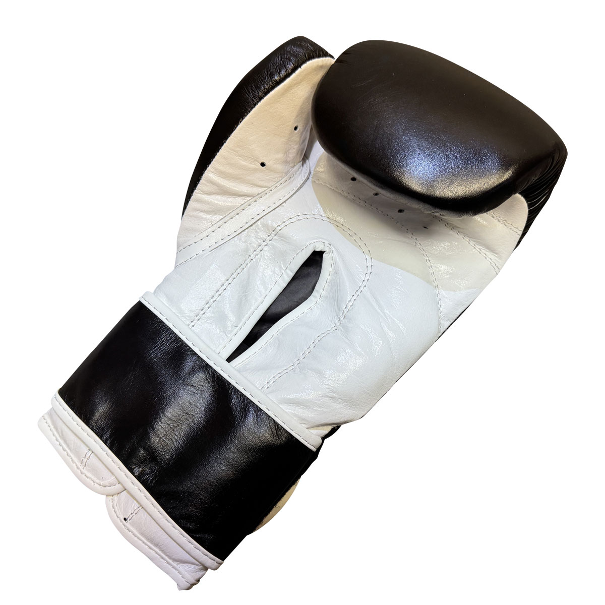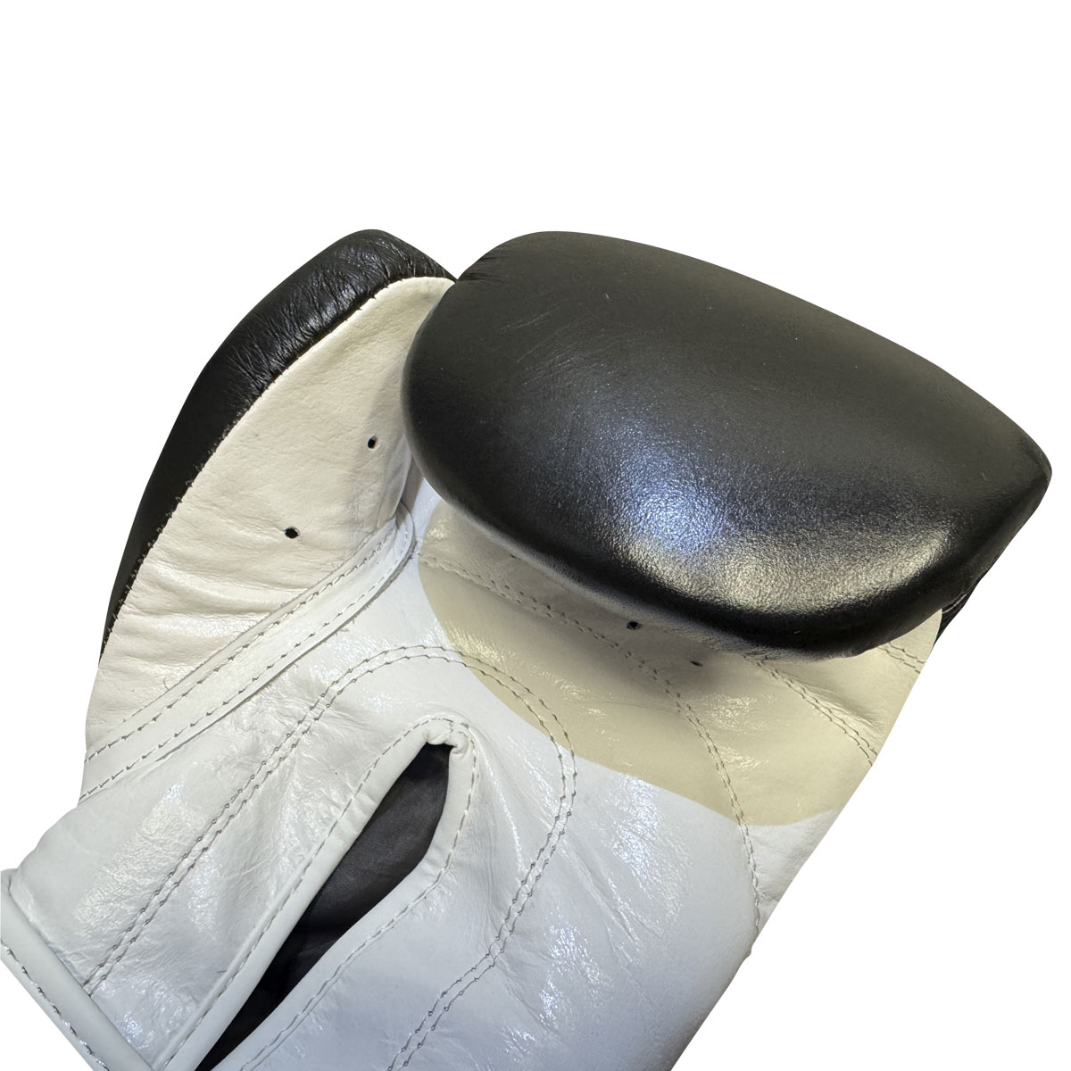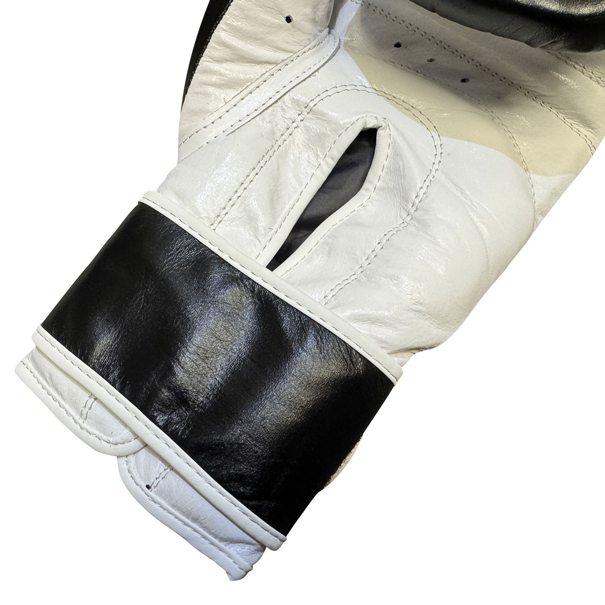 カラーパターンはブラック×ホワイトとシンプルな色合いで製作しており、本革製なので耐久性にも優れており、ナックルパート箇所は通常の厚さ、硬さと言ったベーシックな作りです。