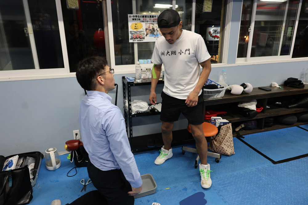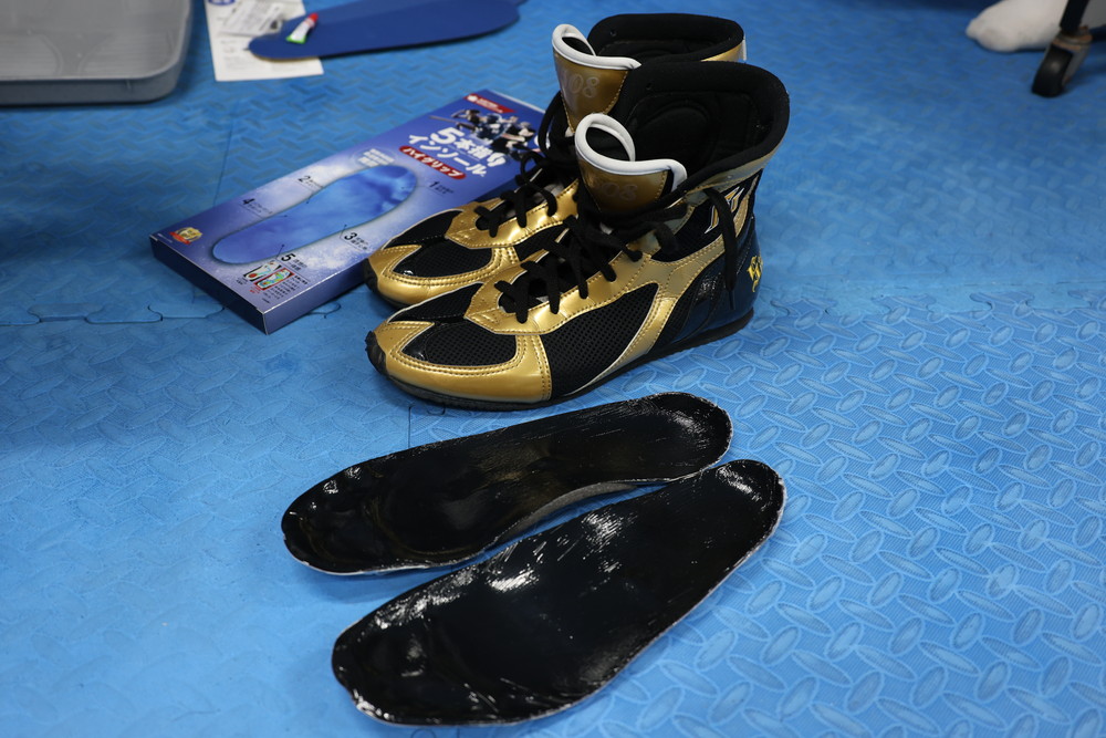 浜田選手は今週土曜日となる10月25日に試合を控えており、浜田選手の試合用シューズに、そしてトレース選手の練習用シューズにReveインソールを施工する為にメーカーである大野さんに同行をして頂けました。