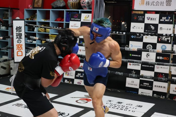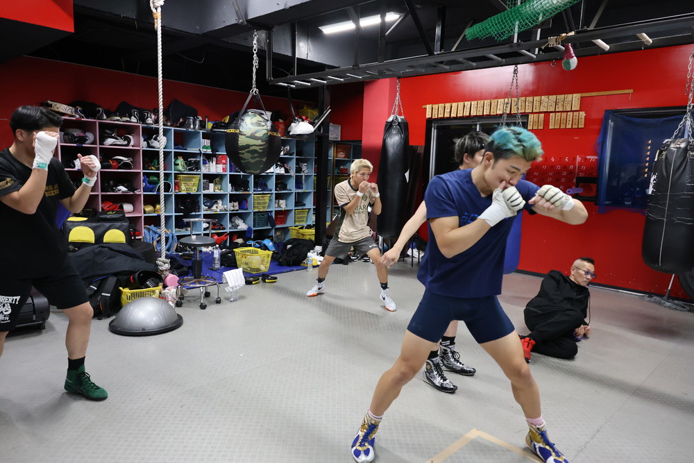 佐々木選手はスパー前にシャドーボクシングでウォームアップをしており、他の所属プロ選手も同じく体を温めておりました。