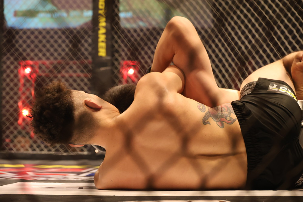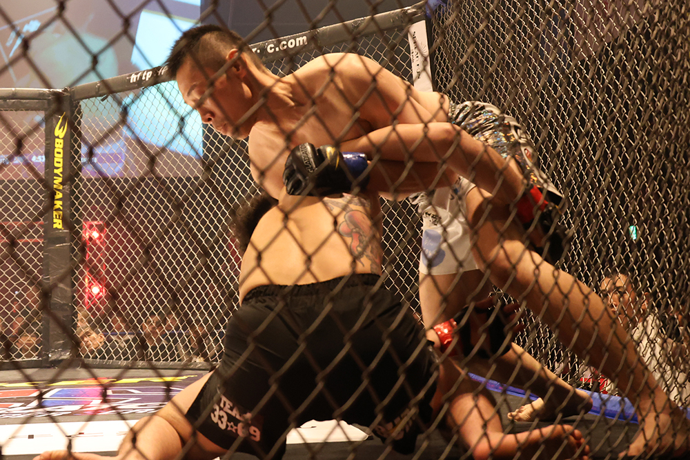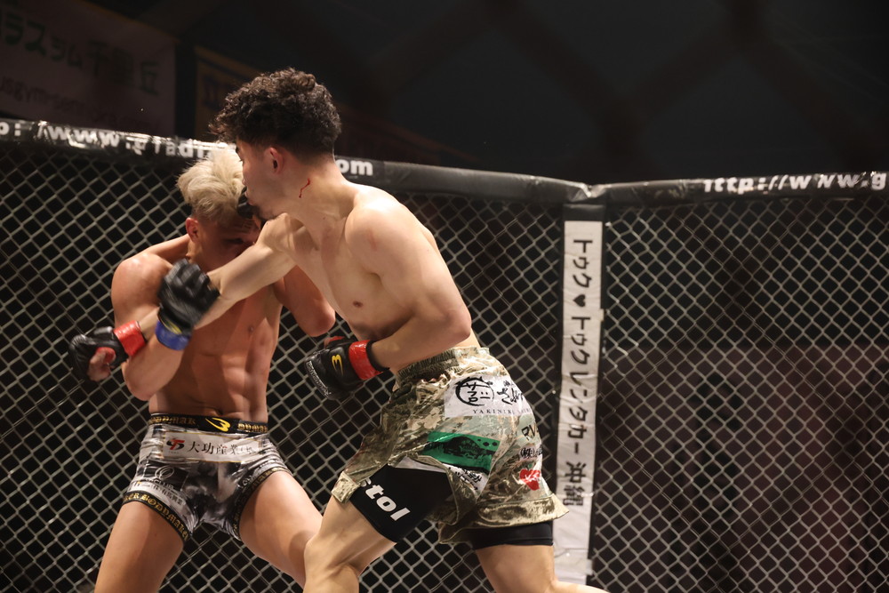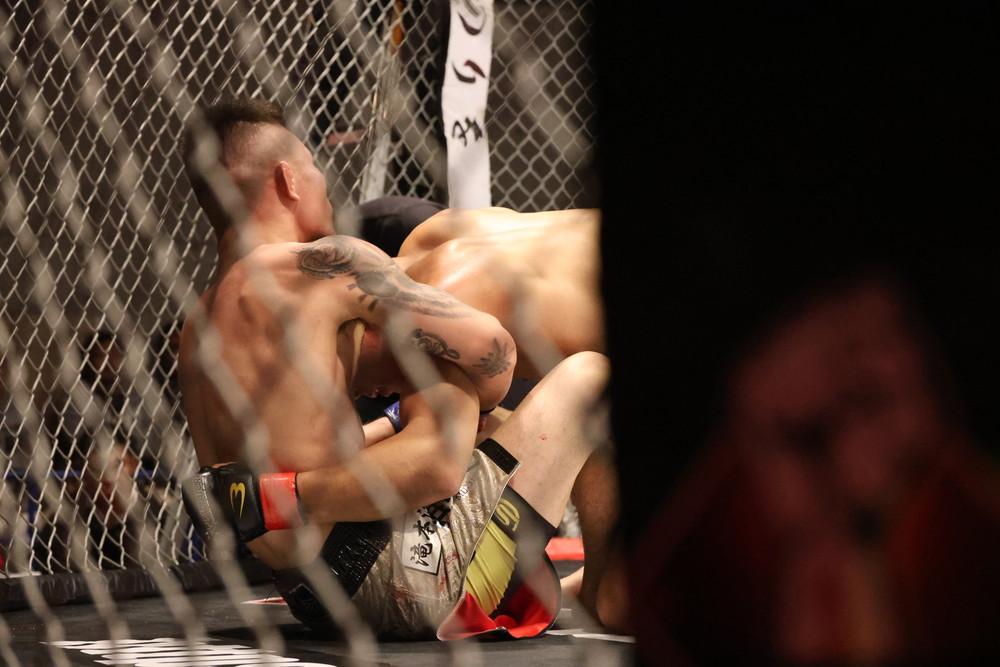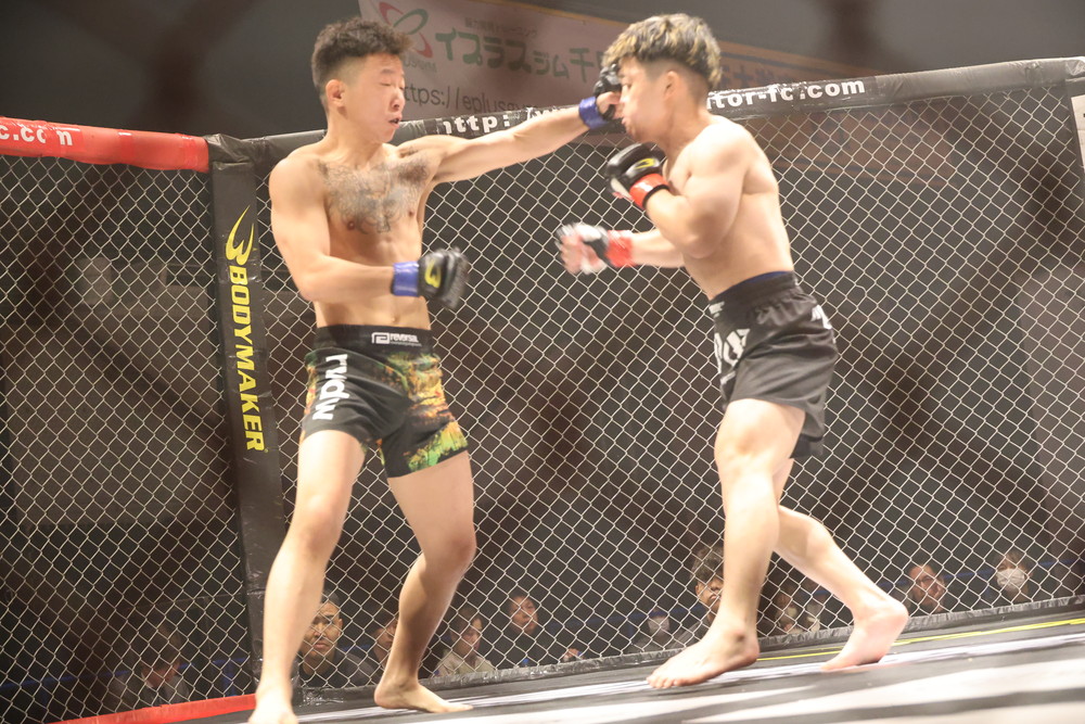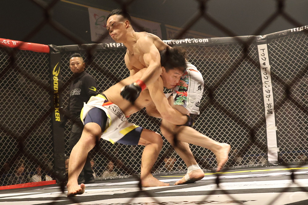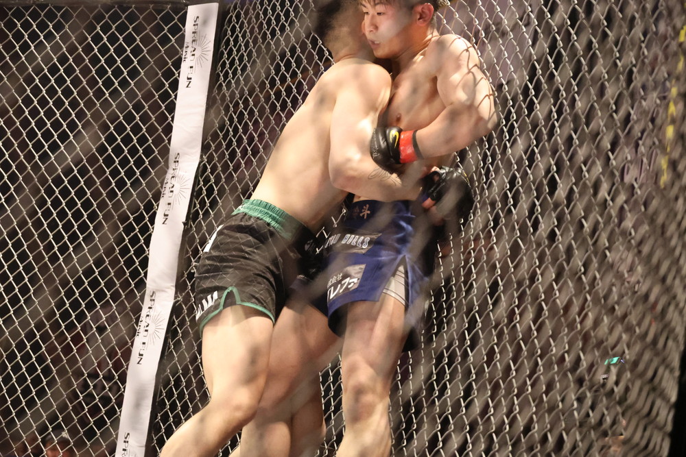 開始から打ち合いとなり、ヒットを奪い合う。諸井はタックルを仕掛け、テイクダウンを奪いマウントからパウンドを落とすが、タッキーも差し替えてからスタンドへ戻すが、諸井は再度グラウンドへ持ち込み、バックからスリーパー、パウンドで攻める。マウント、サイドからパウンドを落とすが、タッキーもクローズガードのトップを奪い返し、アリイノキ状態からローを入れるが、途中諸井が出血をしており、ドクターチェックが入る。試合は続行なり、組み合ってから1ラウンド終了。最終ラウンド、互いにカーフを蹴り、タッキーの蹴りの諸井はタックルを合わせ、ケージに押し込んでからグラウンドへ移行し、ハーフ、サイドと肘を落とし、ノースサウスと完全に抑え込み、腕絡みも狙うなどグラウンドで諸井が有利。判定はグラウンドをコントロールした諸井が勝利する。