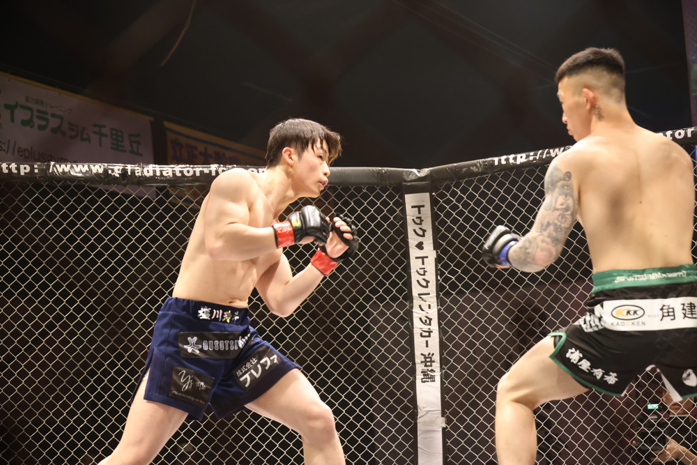 開始から石田がキビキビした動きからカーフを見せるが、塩川がパンチから距離を詰めて組みに入り、テイクダウンを奪うが、石田もスタンドに戻してから、腰にクラッチを組んでから逆にテイクダウンを奪いマウントからパウンドを浴びせ、レフェリーが試合をストップ。TKOで石田が勝利。