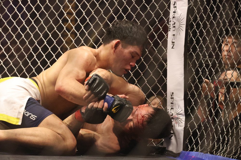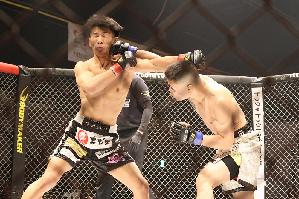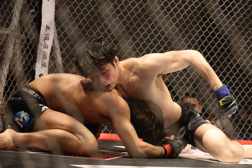 開始から吉野がタックルからのテイクダウンを成功させ、ハーフからコツコツと叩き、肘も連打で入れてから上田が出血するなど、吉野がトップをキープしてから1ラウンド終了。2ラウンド開始から上田へドクターチェックが入るが、試合は続行となる。試合再開から吉野はタックルからのテイクダウンとクローズガードトップ、ハーフを奪うなど1ラウンドと同じ動きを行う。吉野はパウンド、肘を落とし、ラストはパウンドを連打で入れてレフェリーが試合をストップ。TKOで吉野が勝利する。