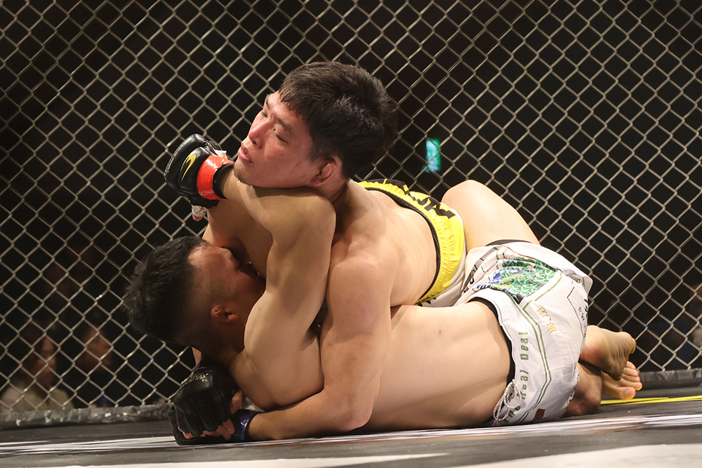 開始からパンは前に出るが、中川はタックルを仕掛けケージに押し込むが、パンは腰が重く簡単には崩れてくれない。ケージ中央に戻ると中川はステップを使いながら攻め、パンは中央に陣取り圧を掛ける。パンチからの打ち合いで中川がタックルを仕掛け、パンに有利なポジションを取られそうになるが、中川がトップを奪ってから1ラウンド終了。2ラウンド、距離を取り、中川がサイドキック、パンがバックスピンキックを繰り出せば、中川も同じのを繰り出す。中川がタックルを仕掛けるが、パンも崩されず、中川が下になり、グラウンドを誘うが、パンはスタンド状態からグラウンドへ移行しない。スタンドの打撃では中川がカーフキックからの攻めで、パンからスリップダウンを取るが、逆にパンのバックハンドブローを浴びて中川がダウン。一気にパンも攻めに行くが、中川は密着してからパウンドを防ぎ、スタンドへ戻し、互いに距離を取ってから2ラウンド終了。最終ラウンド、パンチで牽制し、中川はカーフを蹴るが、互いに距離を取る展開。パンは回転系のフェイントも入れ、中川がタックルを仕掛け、パンにトップを取られるが、中川がトップを奪い返し、ハーフを奪い、バック、マウントと有利なポジションを奪い、バックからのチョークスリーパーを取りに行くなど、ラストで中川が猛攻で攻め立てて試合が終了。判定は中川が勝利する。