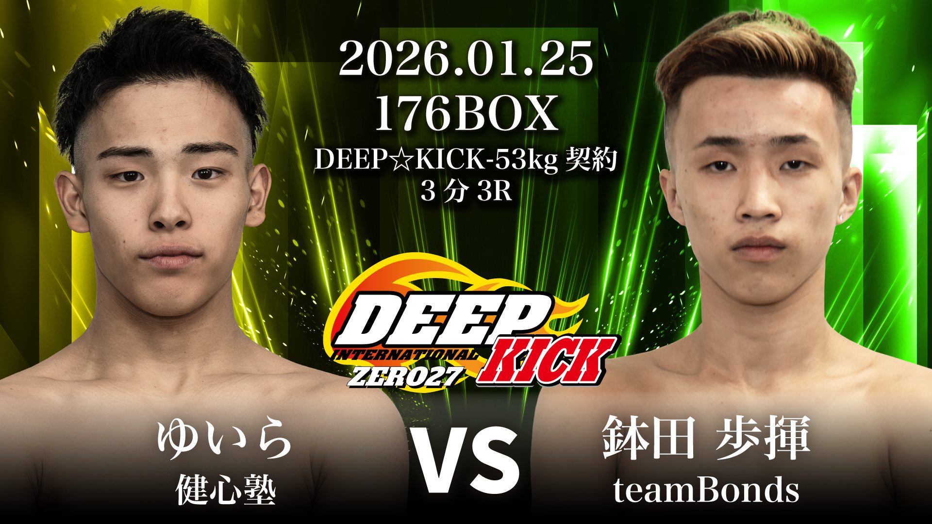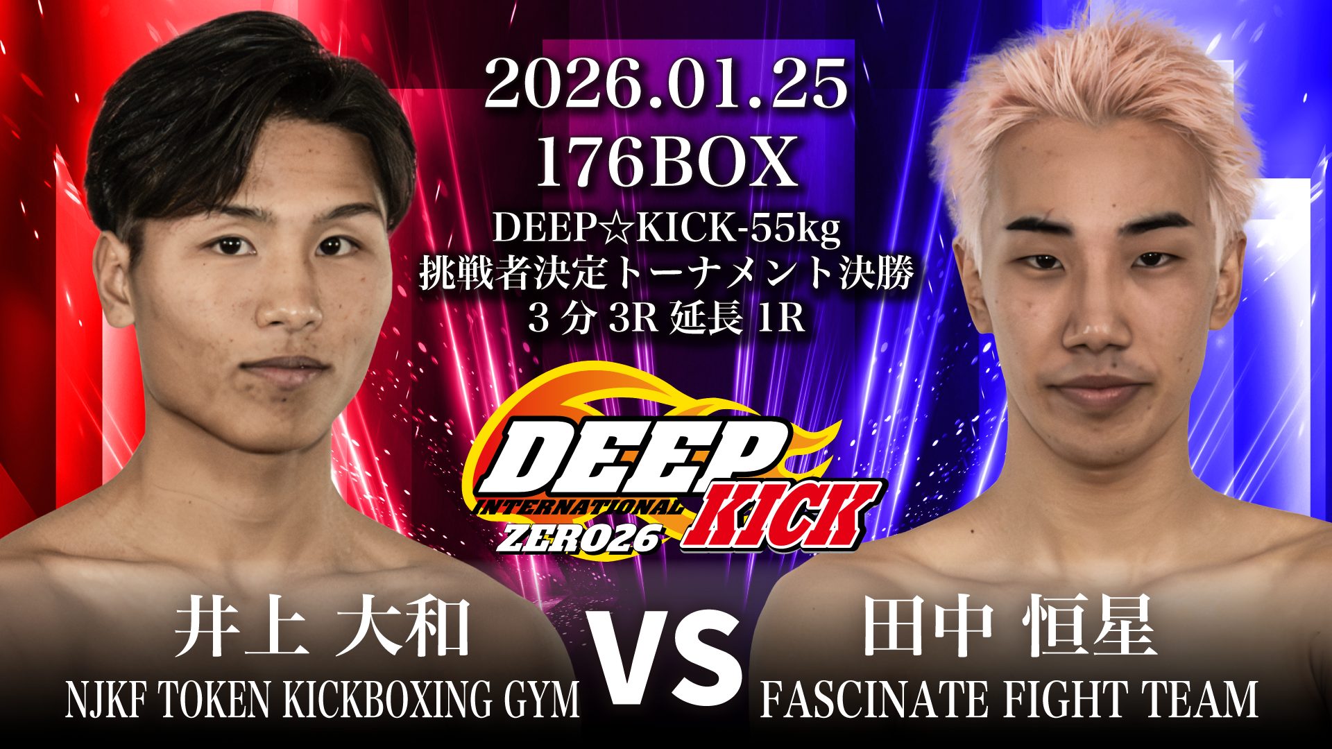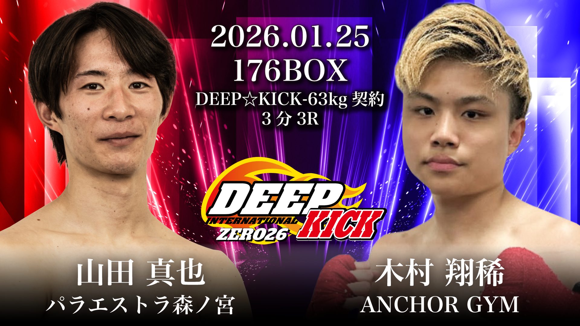 2026年、新年1発目の興行となるは若手選手育成の舞台として開催している「DEEP☆KICK ZERO」大会、来年1月25日(日)豊中市・176BOXにて第1部『DEEP☆KICK ZERO 26』、第2部『DEEP☆KICK ZERO 27』の2部構成での開催が決定。その第1弾対戦カードとして、DEEP☆KICK-55kg挑戦者決定トーナメント決勝に加えDEEP☆KICK-57.5kg挑戦者決定トーナメントの開催が発表された。