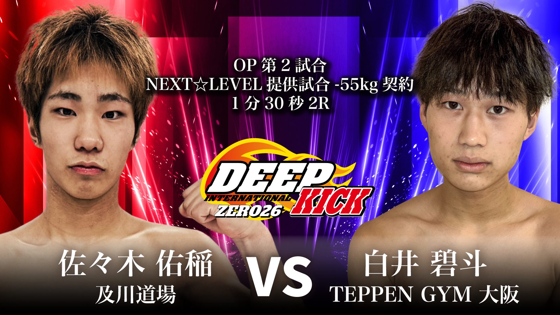 他にも第1部・第2部共にOPイベント、アマチュアファイトも数試合が決定しこれで第1部『DEEP☆KICK ZERO 26』、第2部『DEEP☆KICK ZERO 27』の全対戦カードが決定した。2026年1発目のDEEP☆KICKとなる今大会では各トーナメントの開催にランキング戦、そしてプロデビュー戦となるファイターも多く集結した。果たして2026年を賑やかすニュースターの誕生となるか、DEEP☆KICKの2026年にも是非期待してほしい。試合順は下記の通りとなる。