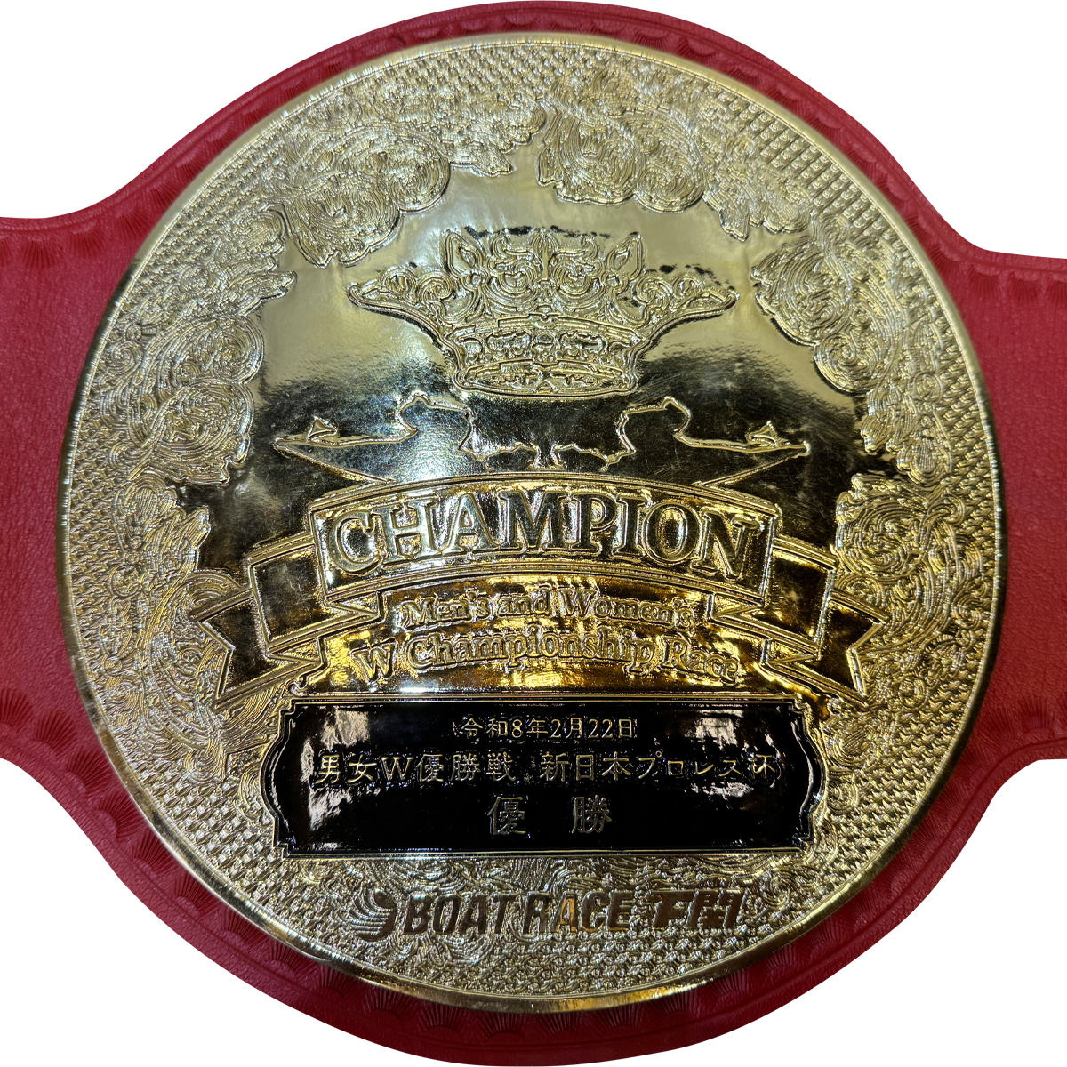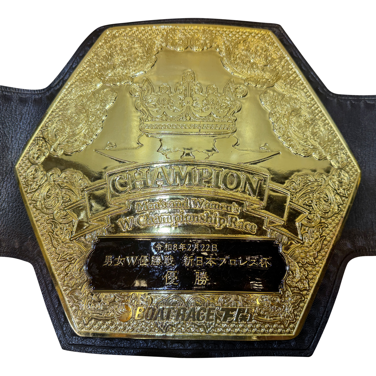 ボートレース下関と新日本プロレスとのコラボで製作を行ったベルトです。男性と女性を分けて製作をしており、ベルトの形も変えております。男性らしい形、女性らしい形で製作が出来ております。