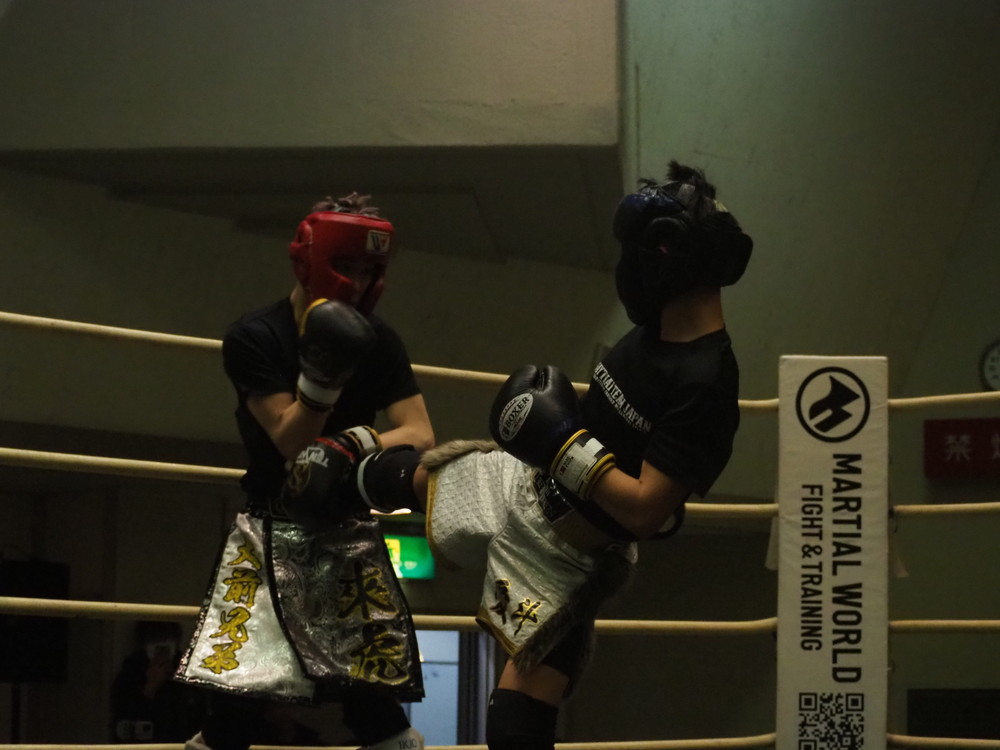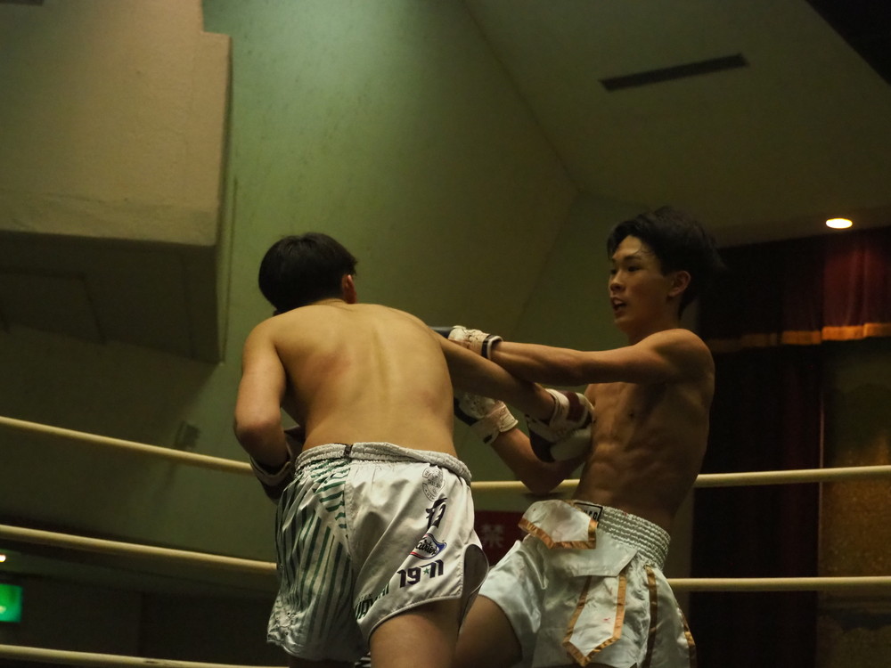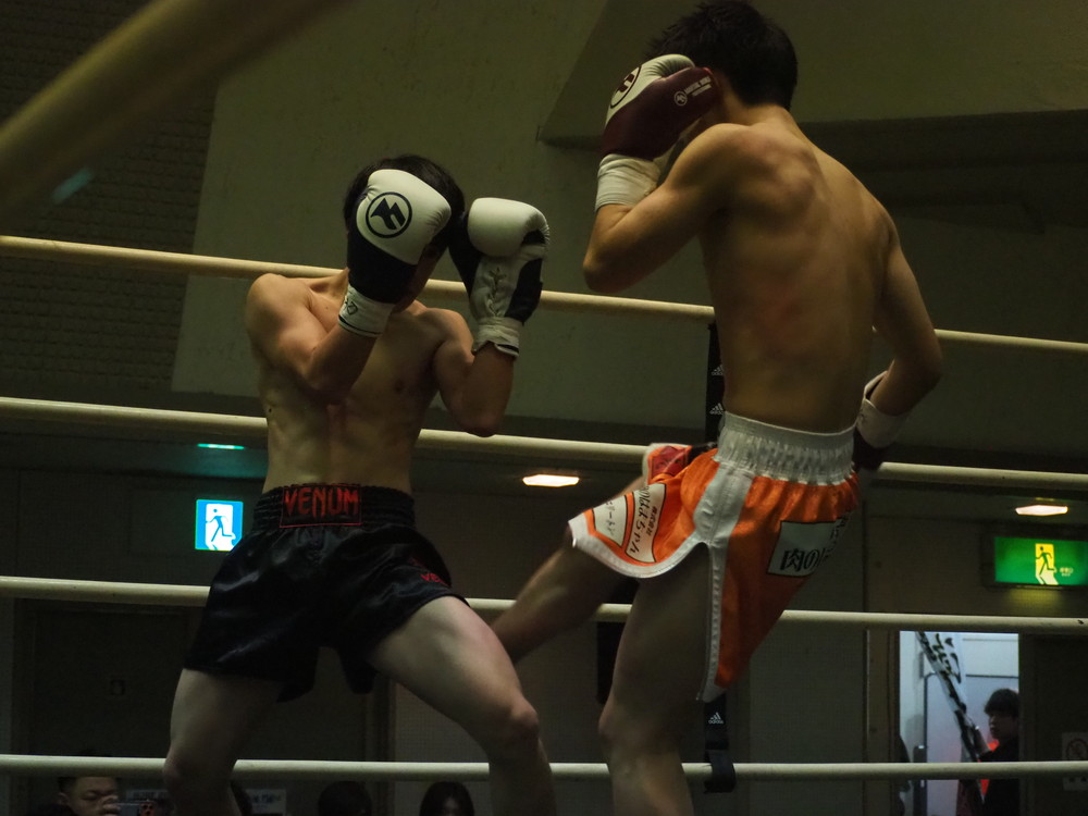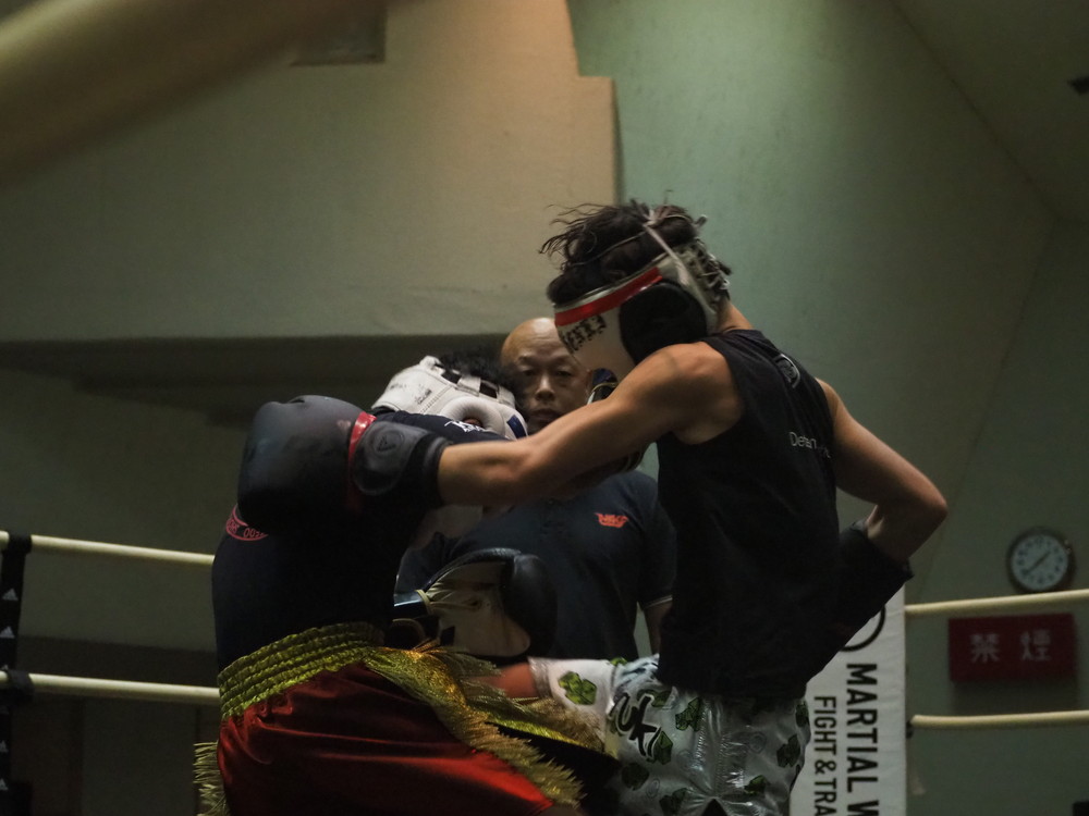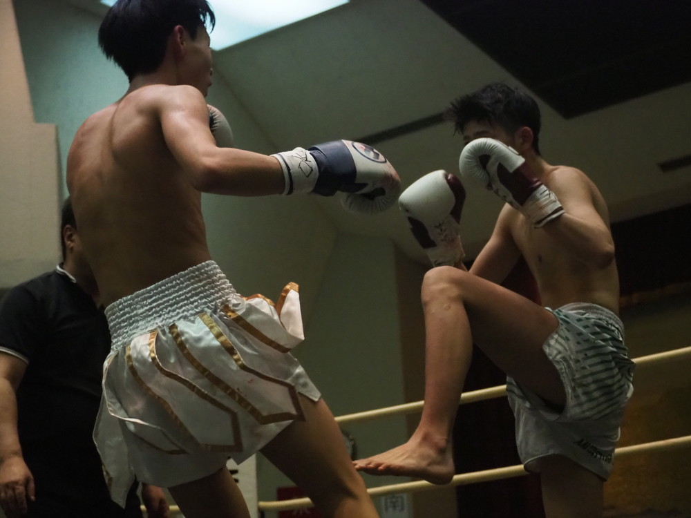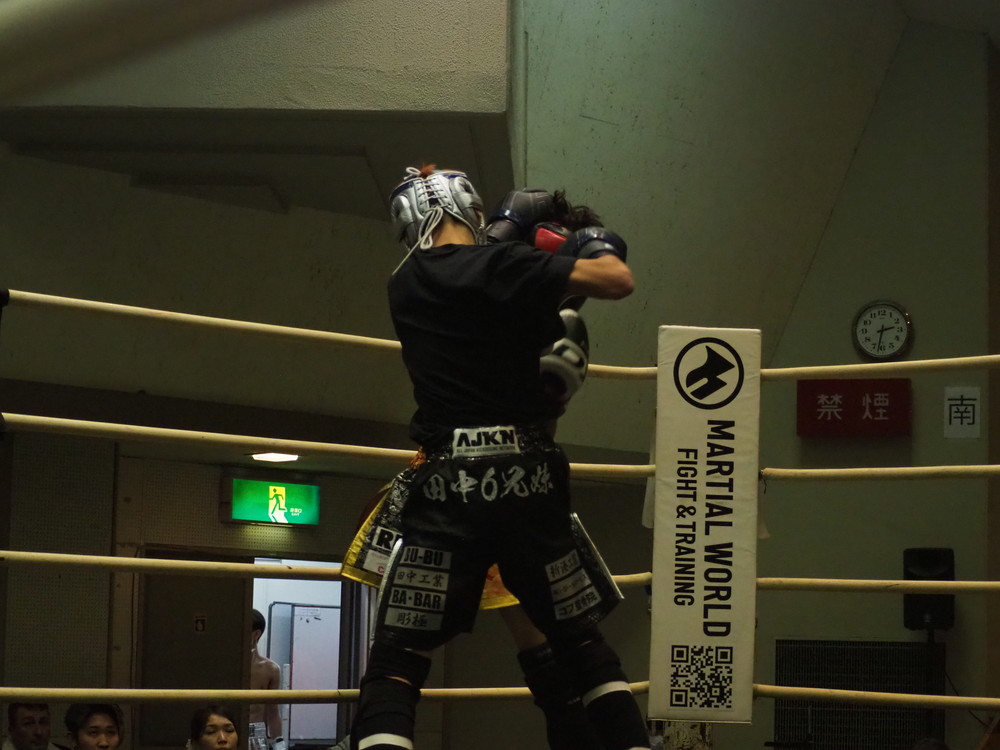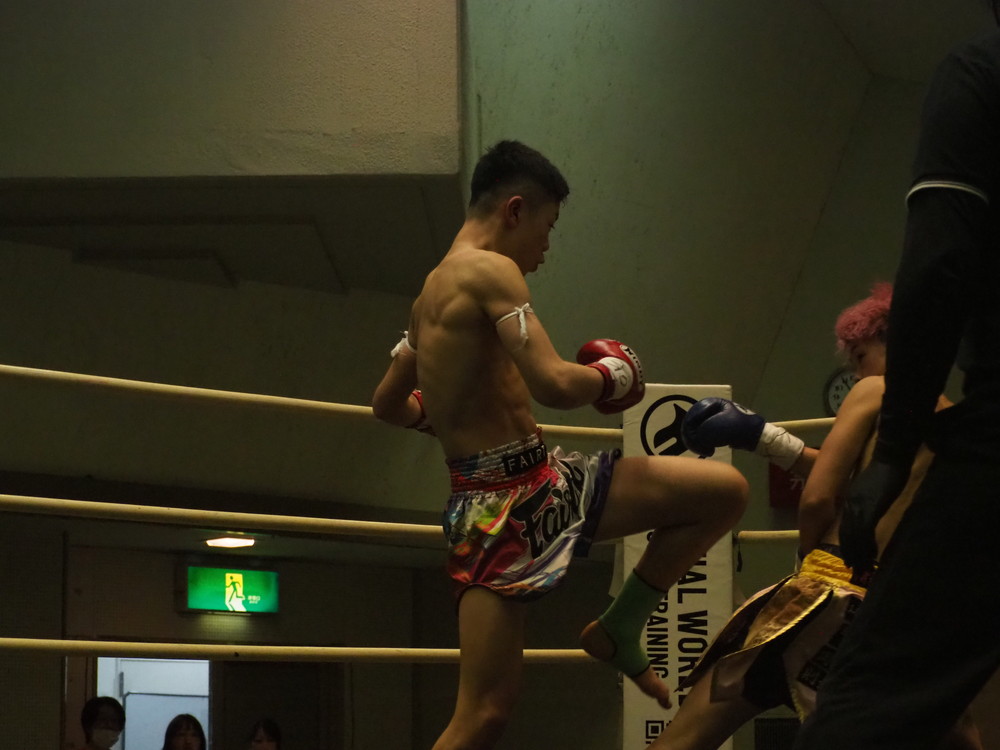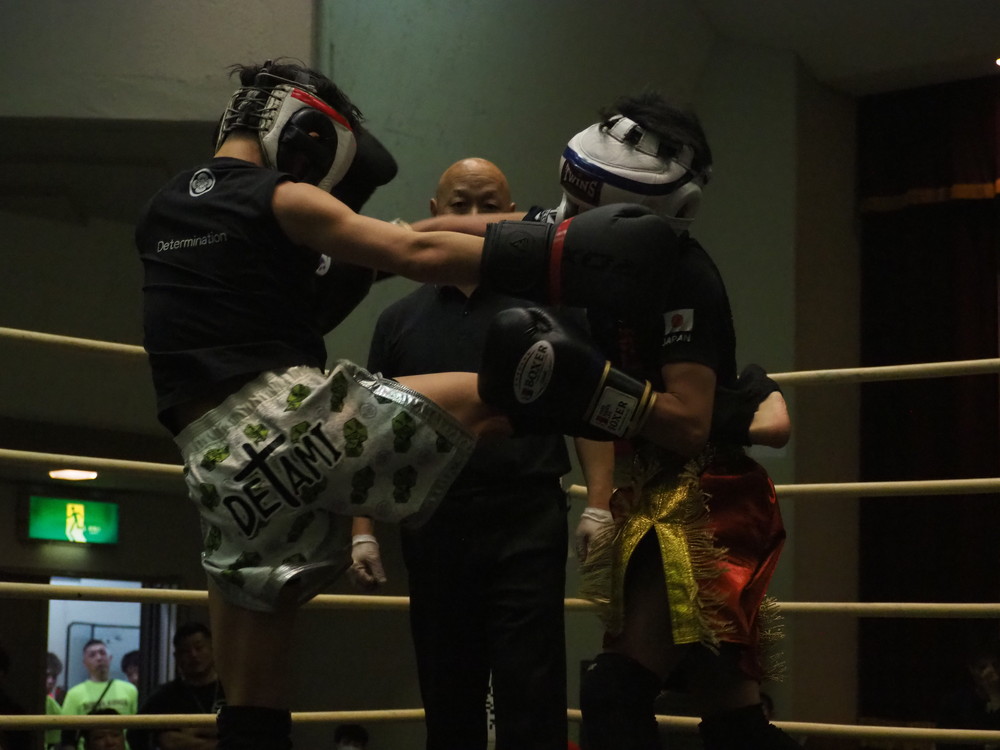 1R、互いに蹴り主体の攻防に。中でカンタは左ハイ・左三日月蹴りなど左の蹴りを軸に圧をかけていく。川西は入ってきたところに左右のロー、左フックからミドルと返していく。ラウンドを通じてのプレス、そして首相撲の展開でもカンタが優位か、川西もローを軸に着実なヒットを重ねていくも1Rはややカンタが優勢な印象。