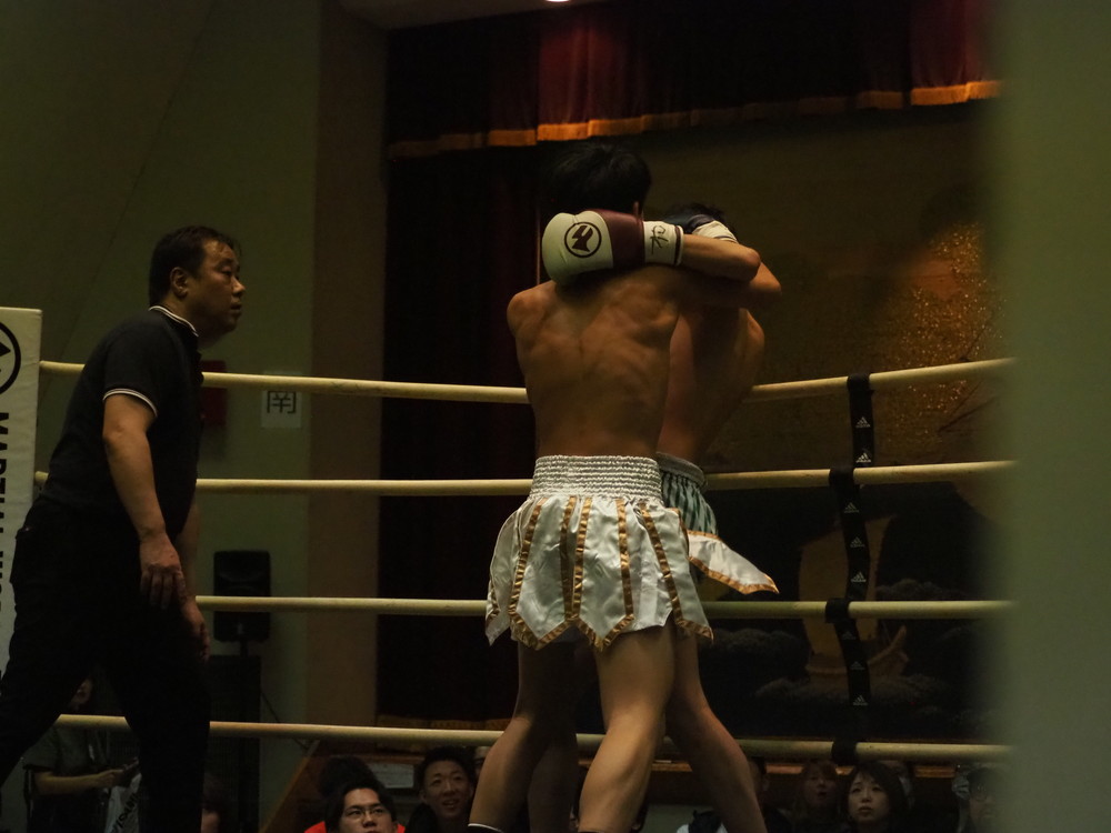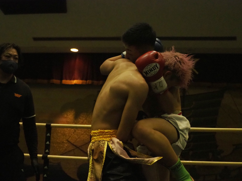 続く2R、勝負はここで決まる。序盤より首相撲で捕まえてからの膝を中心に繰り出していくカンタ。川西もミドルにロー、フックと繰り出すもヒット差は時間と共にどんどんと開いていく、何より首相撲の際に頭を下げてしまうのは危険だ。そしてカンタはその川西のクセを見逃さない、ラウンド中盤からは疲れの見える川西をコーナーに張り付けパンチに膝・ハイキックで印象を残すと、川西の頭が下がったところに顔面膝蹴りをクリーンヒット、そこからラッシュをしかけていきファーストダウンを奪う。立ち上がった川西だったが、続けざまにカンタが川西を膝にパンチでコーナーに張り付けにしたところでレフェリーストップ。2R2分21秒、圧巻のアグレッシブさを見せたカンタが久方ぶりの勝利を自身初のKO勝利で掴み取った。