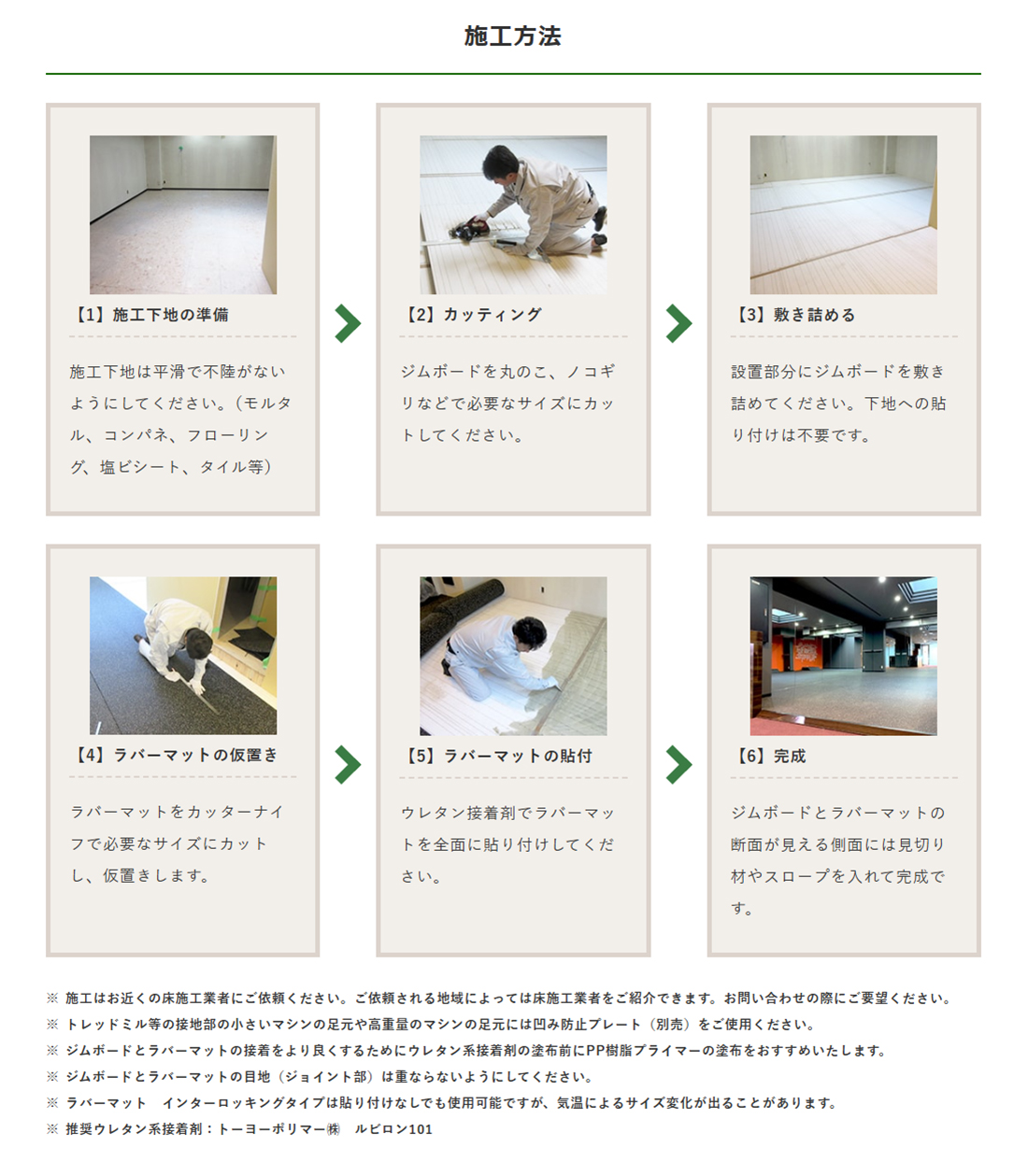 ※ ジムボードとラバーマットの目地(ジョイント部)は重ならないようにしてください。